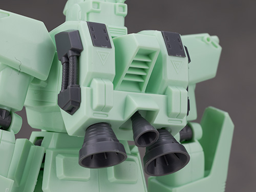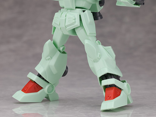 足の甲やヒザ下のフレームは別パーツ化され色分けされていますがスラスターなどは塗分が必要です。
