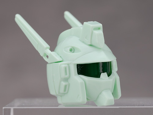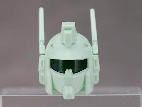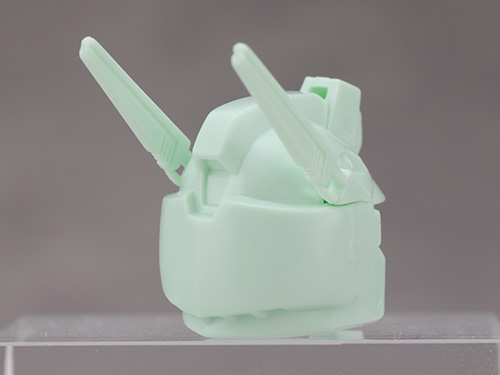 頭部アップ。連邦系の量産機らしいバイザータイプの頭部でアンテナが2本あるのが特徴です。