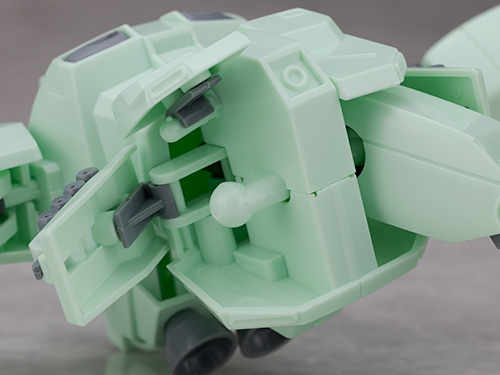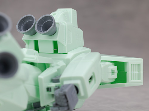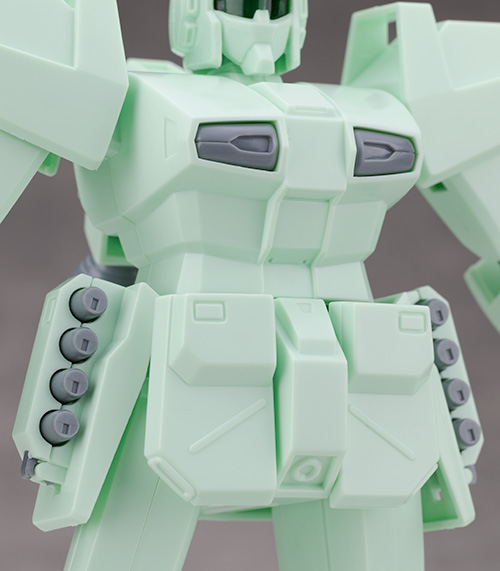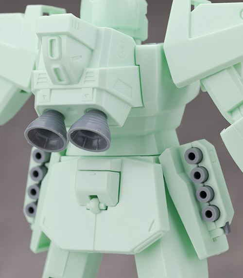 機体のカラーですがジェガン系に近いような淡いグリーンの成型色がメインカラーで
