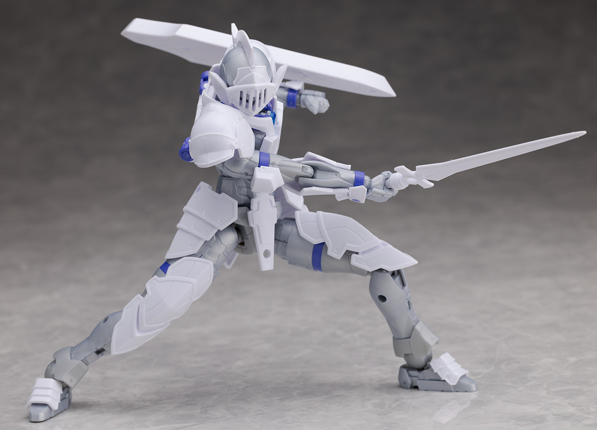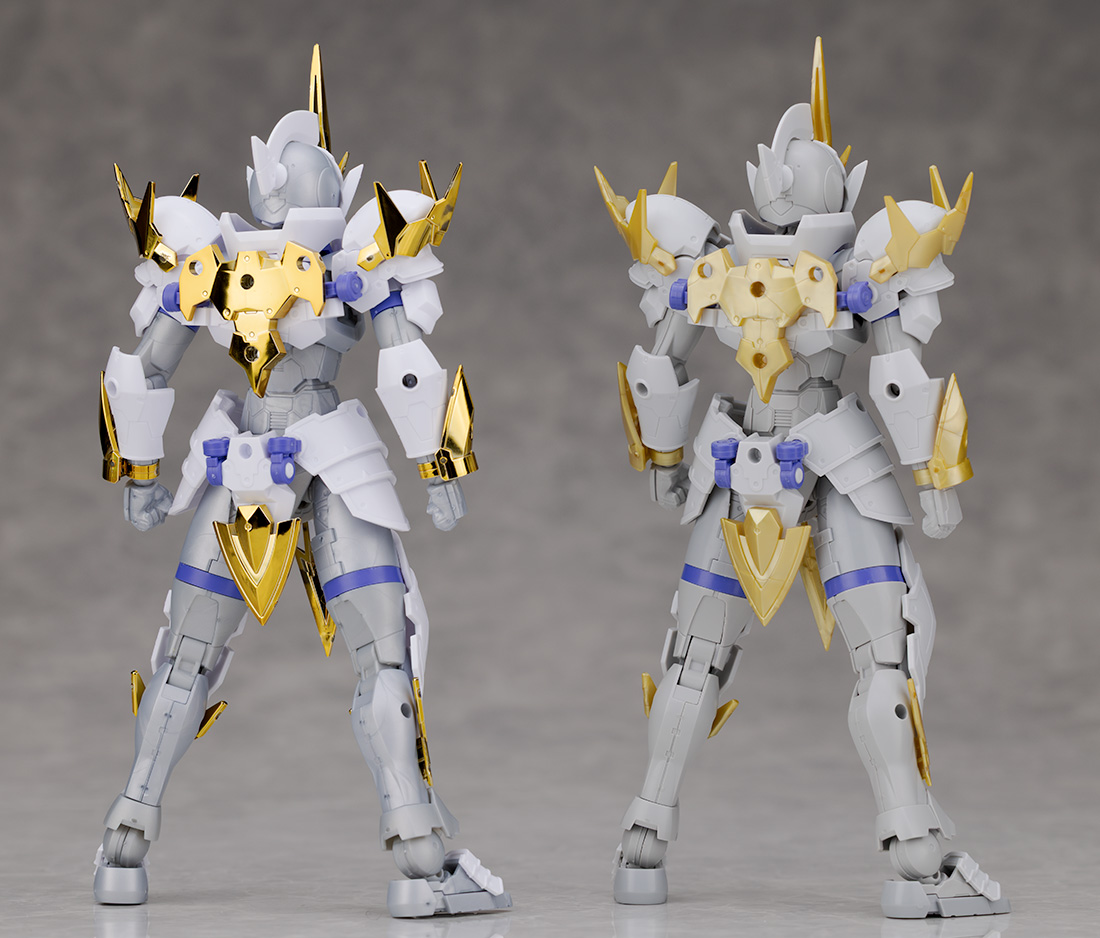 今回はカラバリキットとなっているため造形的な変更点はなく、ファンタジー要素が強い中世の甲冑姿をモチーフとした装甲デザインが特徴です。
