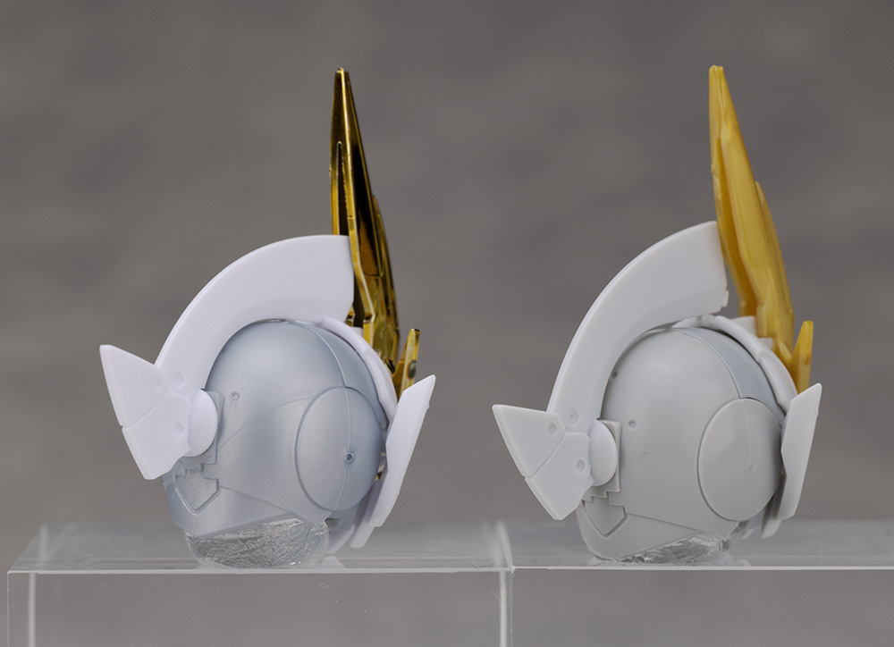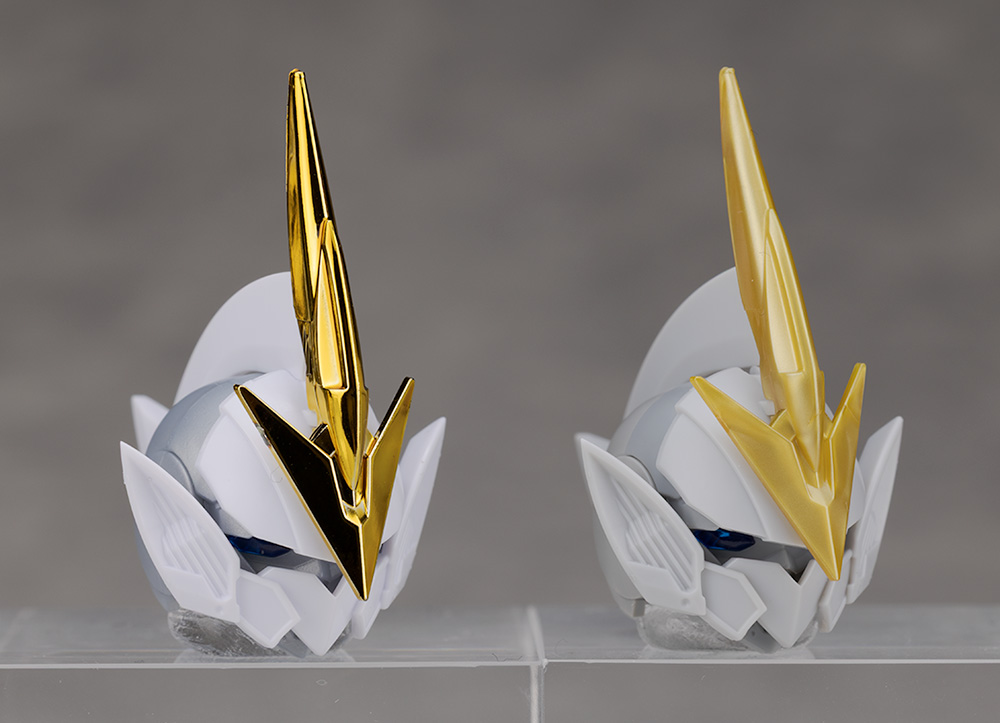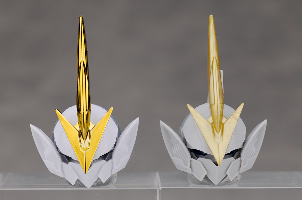 ゴールドメッキですがギラっとした輝きのある派手なメッキが特徴的で、真っ白なアーマーやパールシルバーの素体と組み合わせる事で
