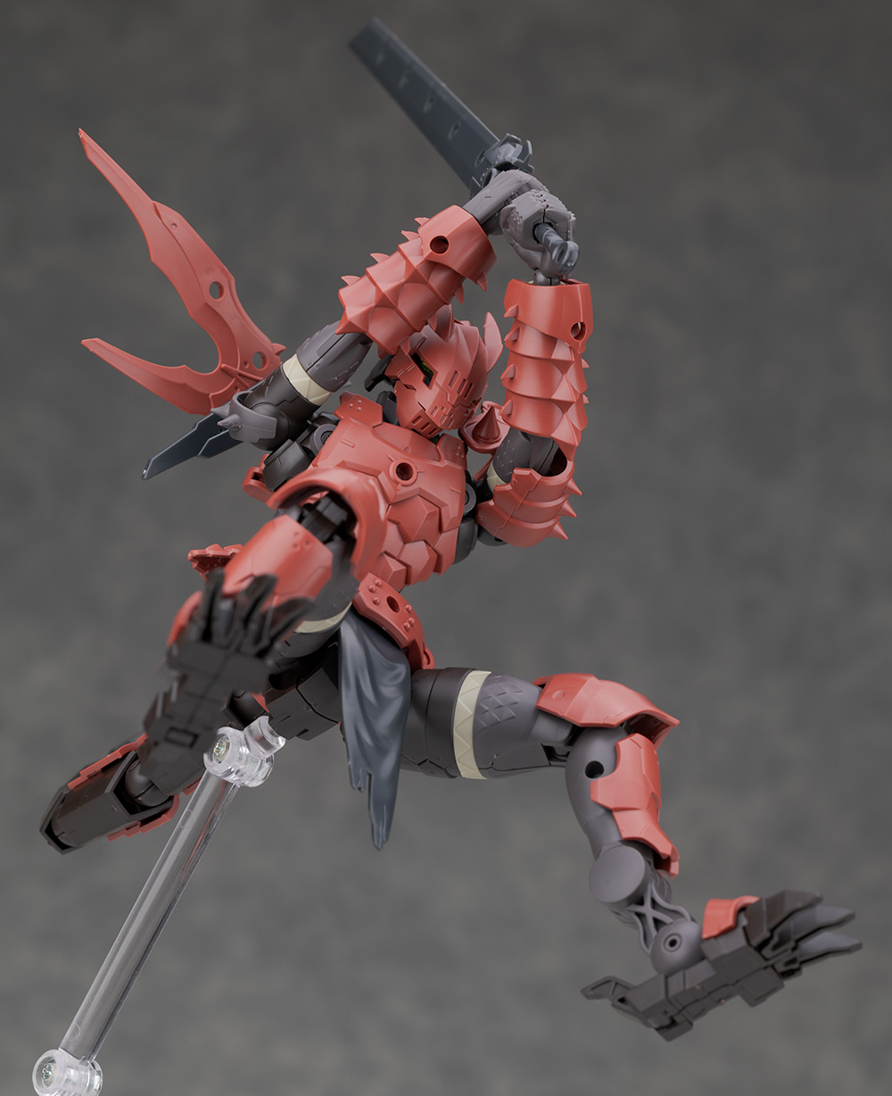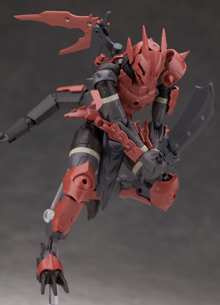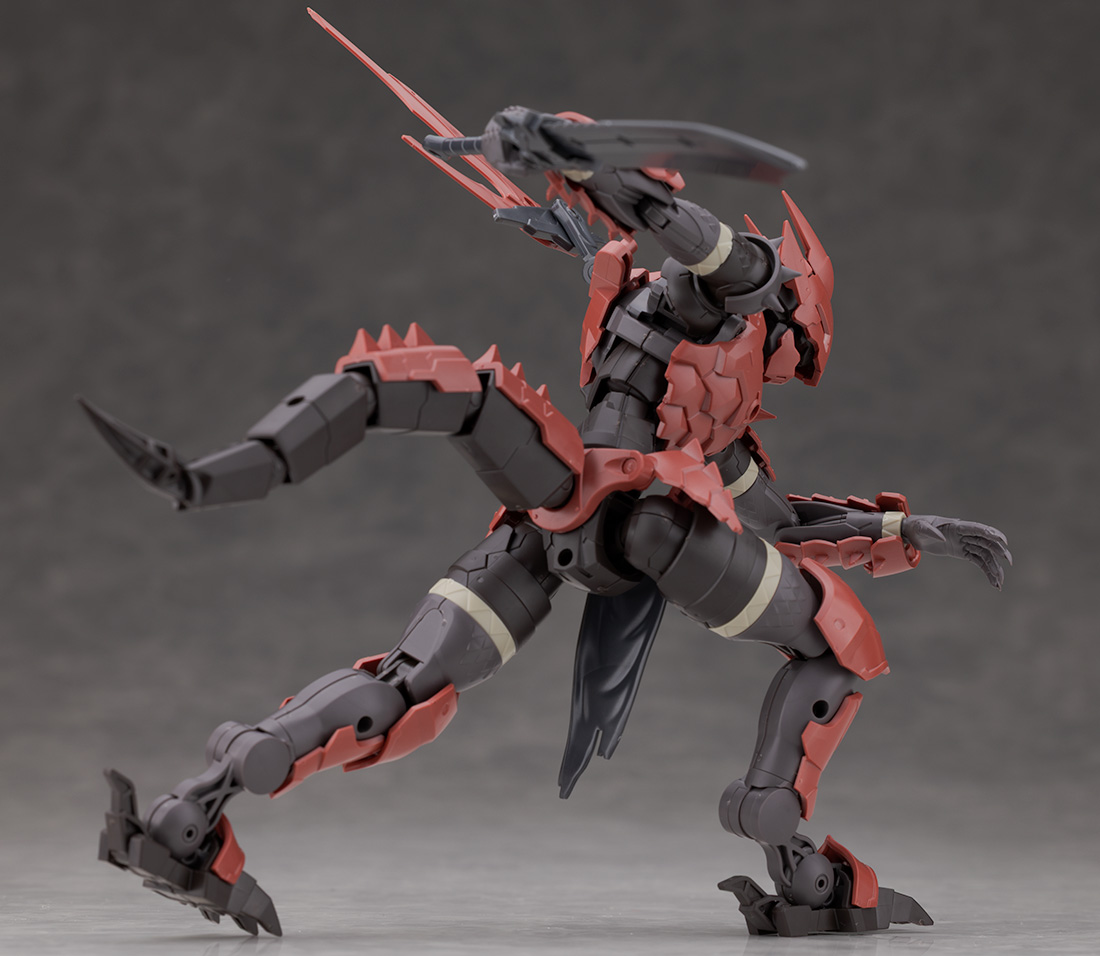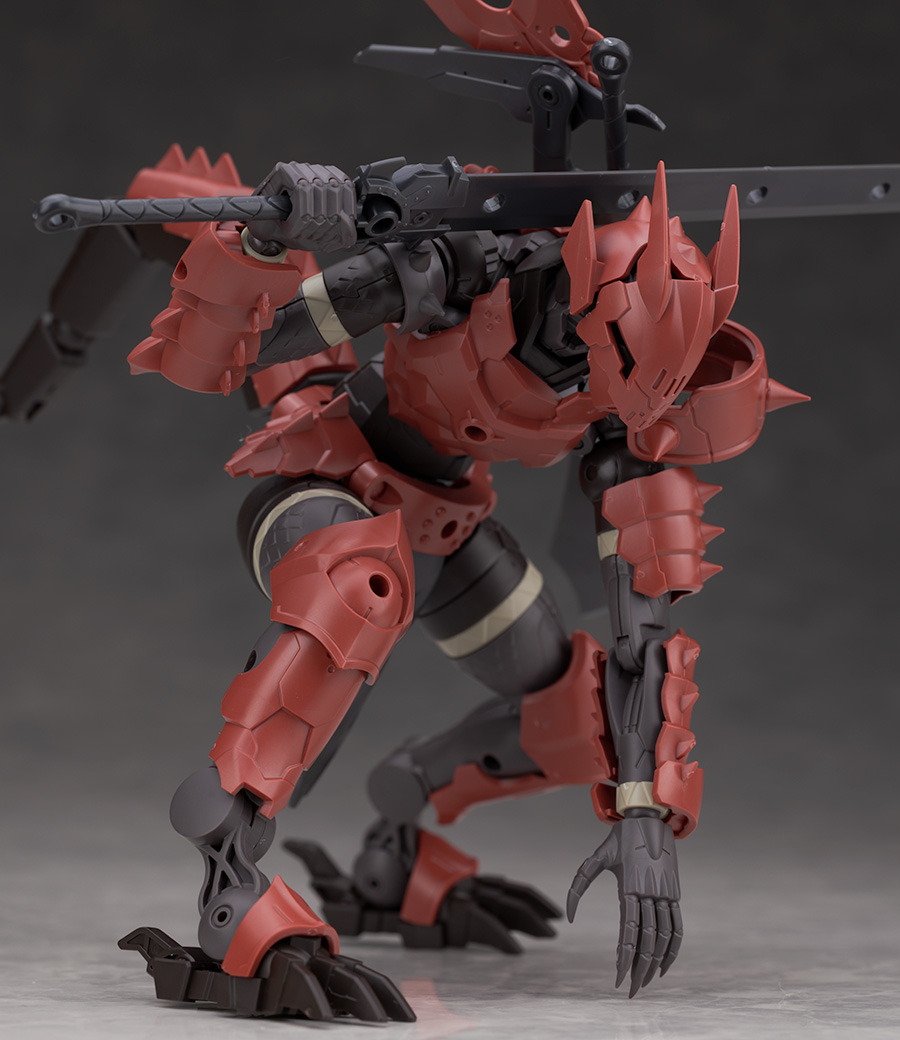 腕が長く、脚部も獣脚のため人型とはだいぶ異なるバランスで荒々しい印象に。