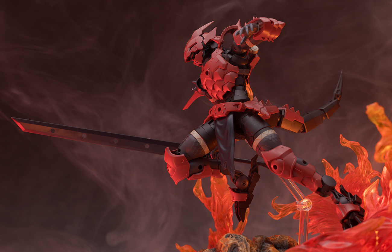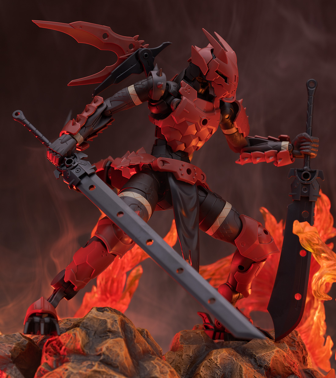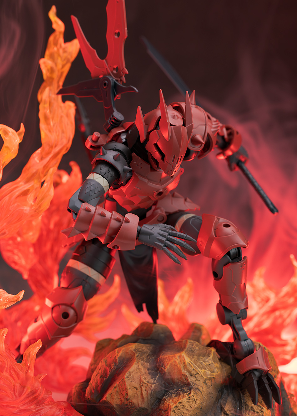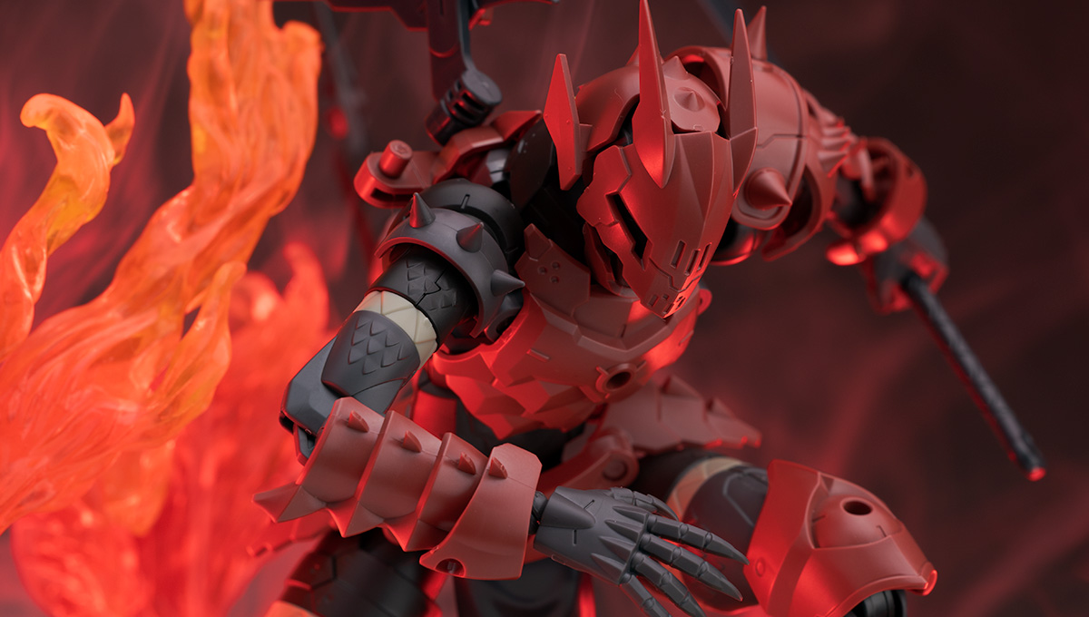 赤褐色のアーマーはトゲや鱗状のディテールがあり、ドラゴンらしさを強調した荒々しく力強い姿です。