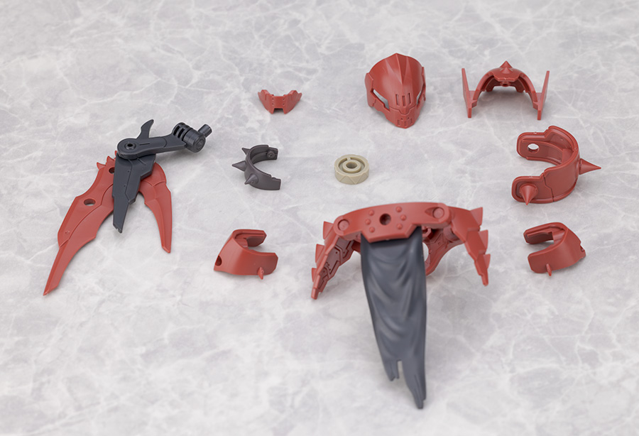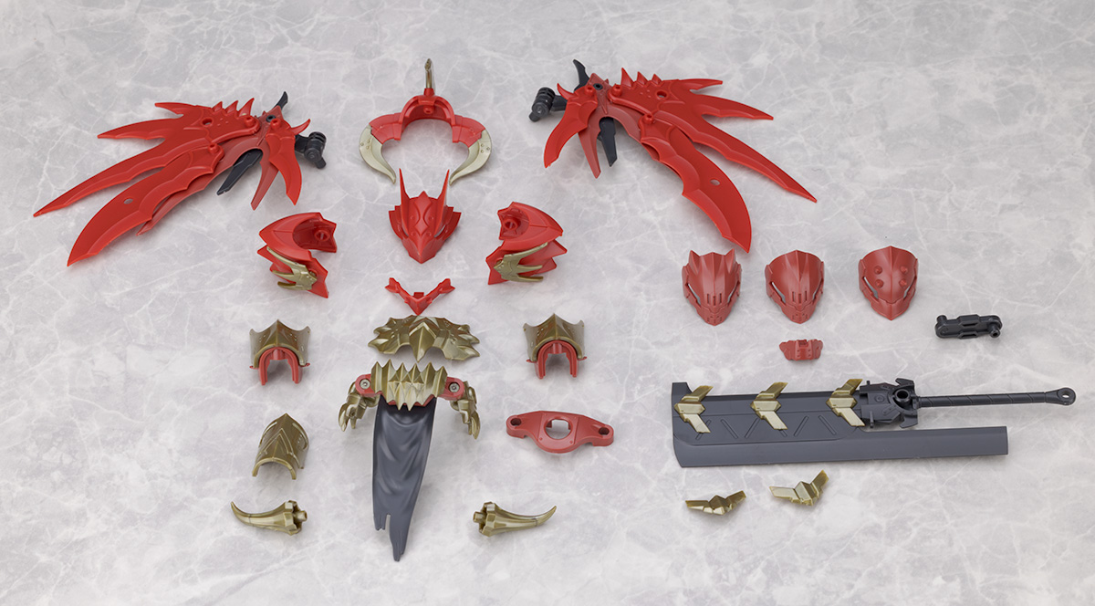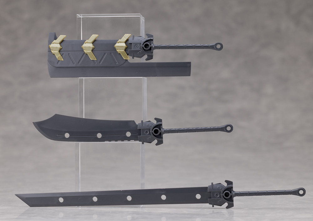 ドラゴニアロードとは別の交換頭部アーマーパーツ3種、武器懸架などに使えるジョイントパーツ、それに新規のソードとソード強化パーツが付属します。