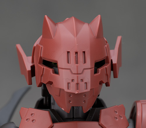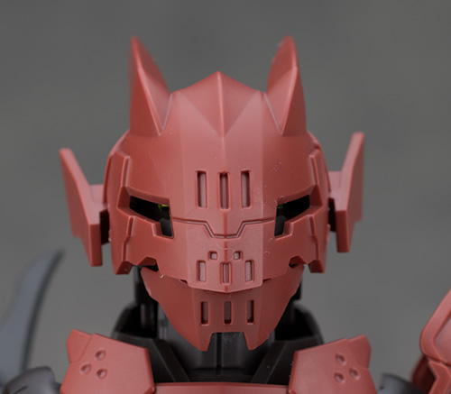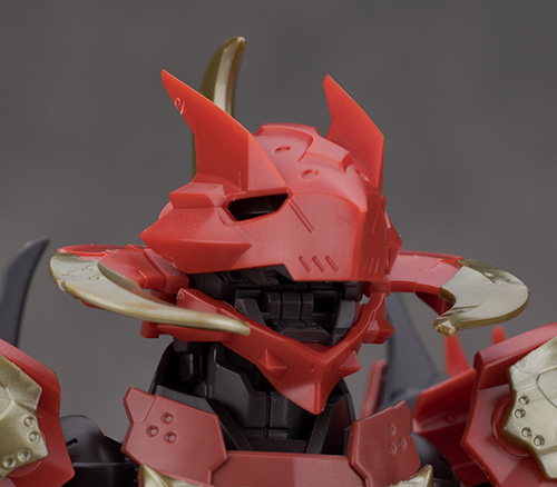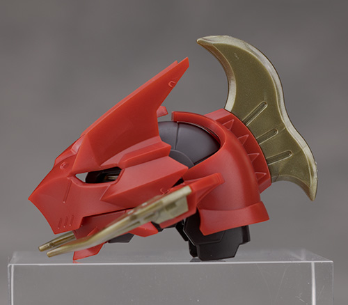 頭部アップ。頭部は顎の装甲なども変わりトサカや角が目立つ豪華な作りになりました。