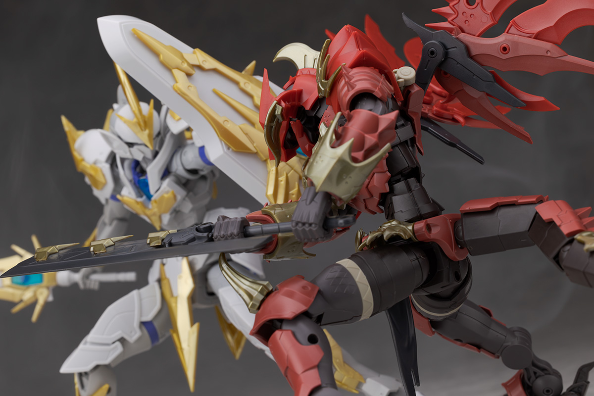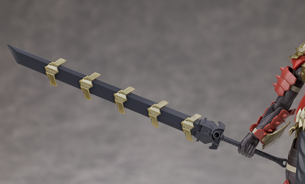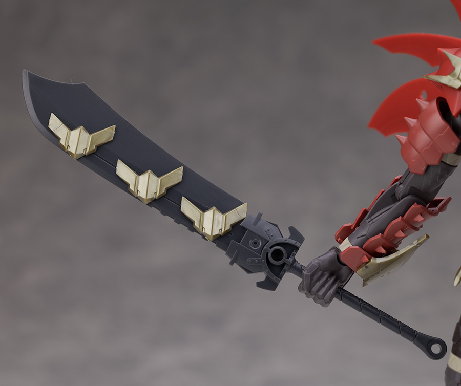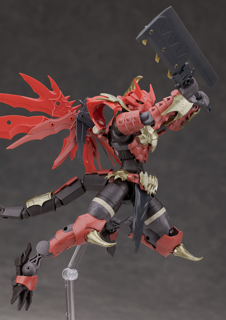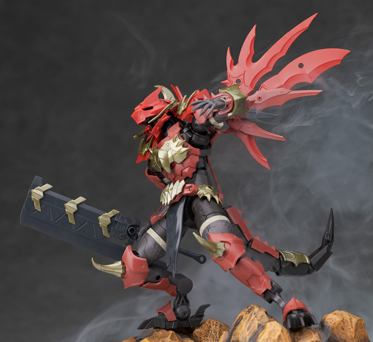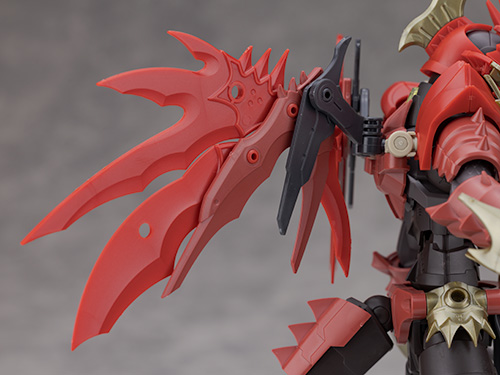 膝には角状のパーツを取り付け、尻尾にもゴールドの追加アーマーを装着します。