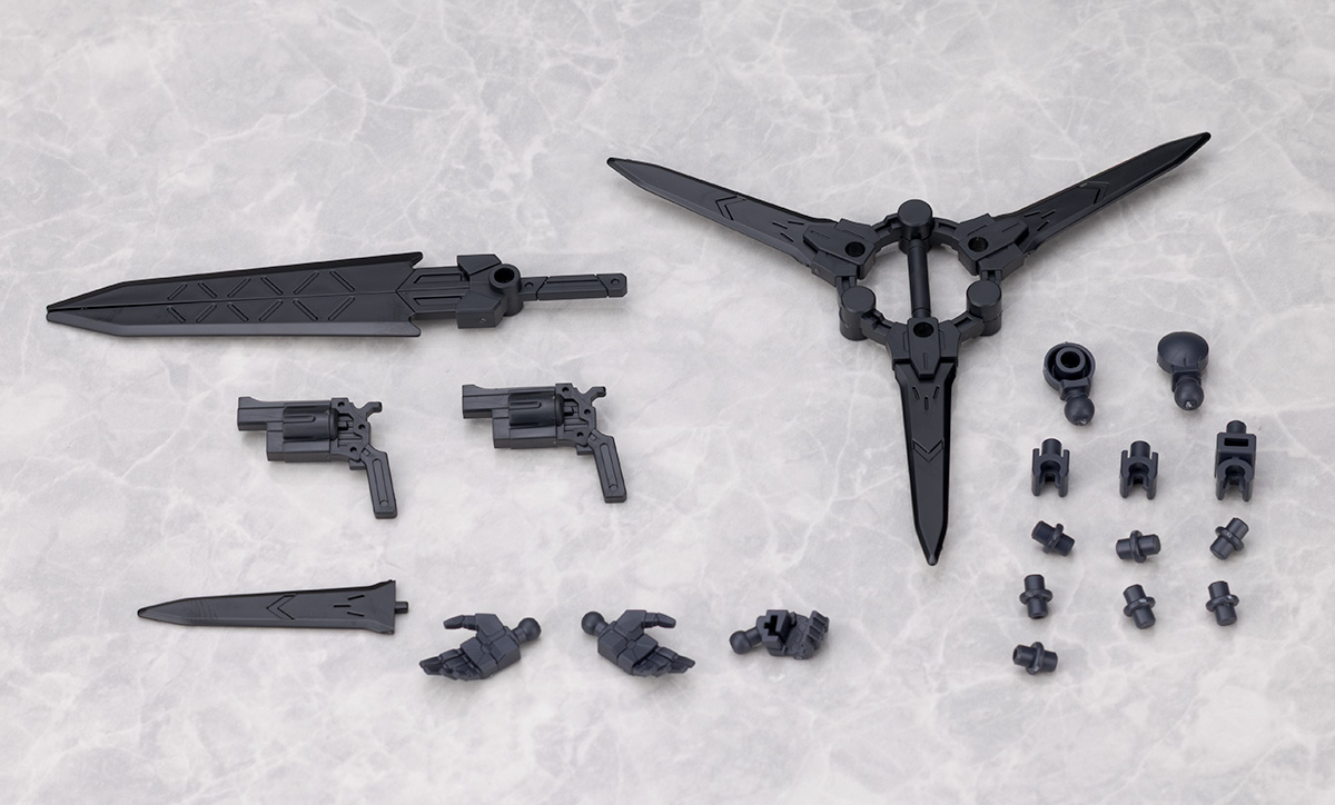 付属品は大型ソード、チャクラムダガー、リボルバー×2、平手、角度付き右持ち手、