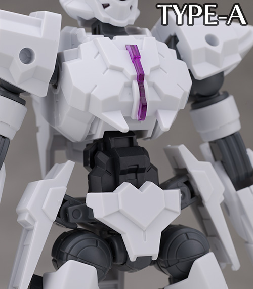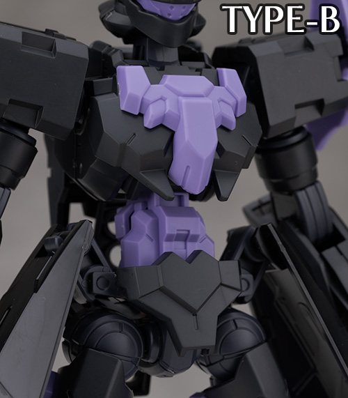 頭部や胸部、肩部などは一部新規でTYPE-Aではシールドとして使われていたパーツが腰アーマーとして使われているなどの特徴があります。