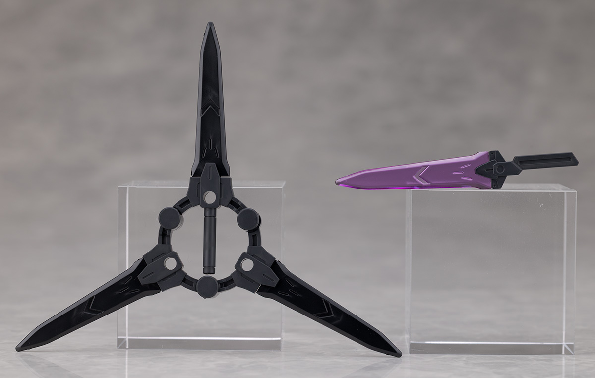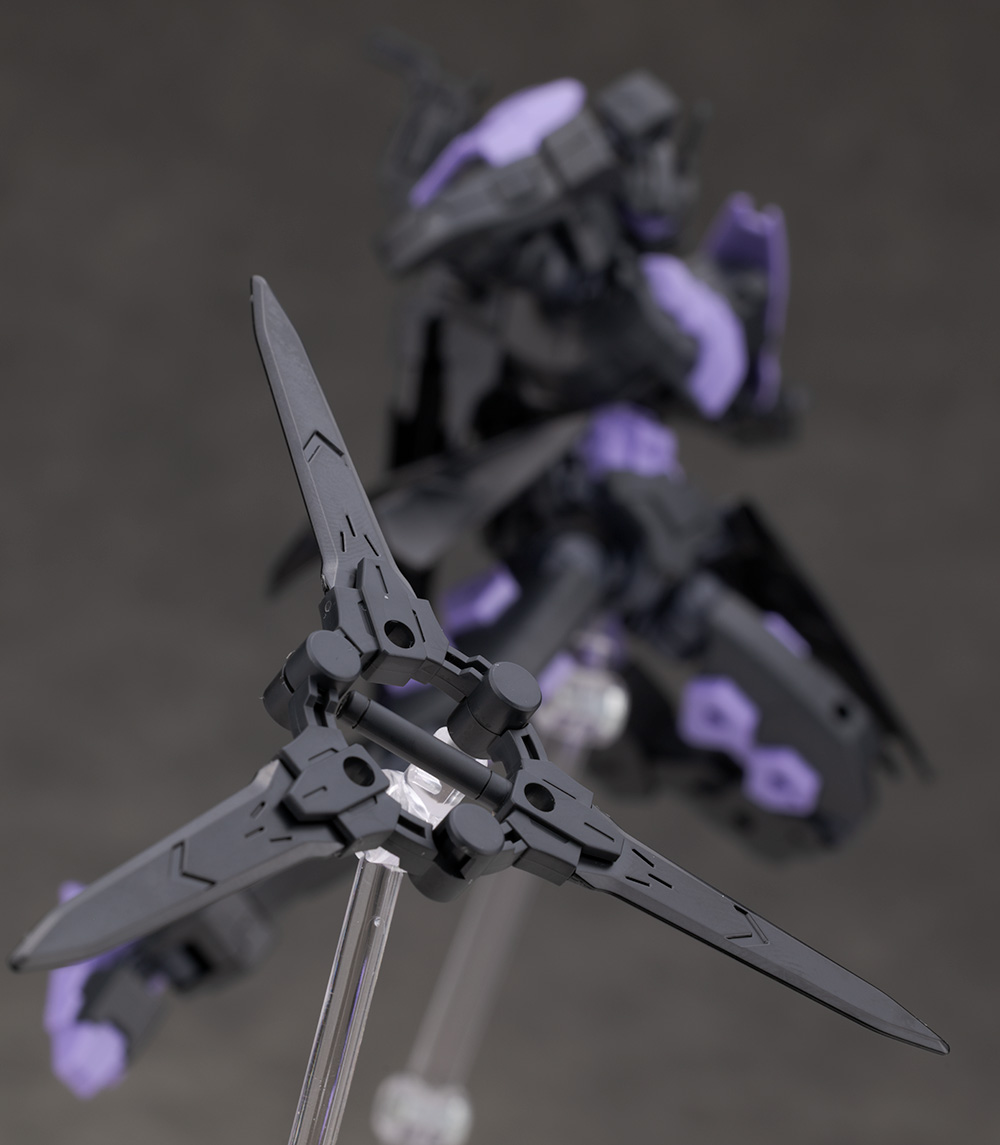 また武装も刃自体は共通なものの、グリップパーツが新規で大型ソードやチャクラムダガーといった別武器に仕上げられているのも面白いですし、
