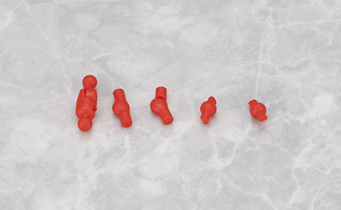 こちらはタンポ印刷済みの表情で、やや右目線の口を開けた笑顔のフェイスパーツ。