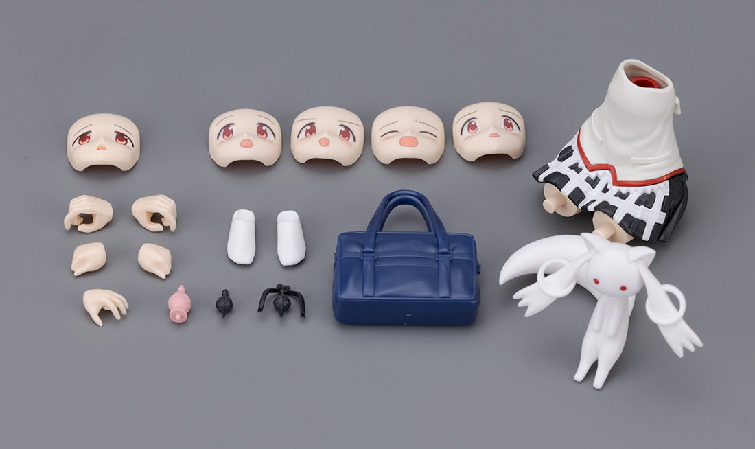 持ち手、握り手、ソウルジェム用持ち手、交換足パーツ、グリーフシード2種、バッグ、それにキュゥべえフィギュアが付属します。