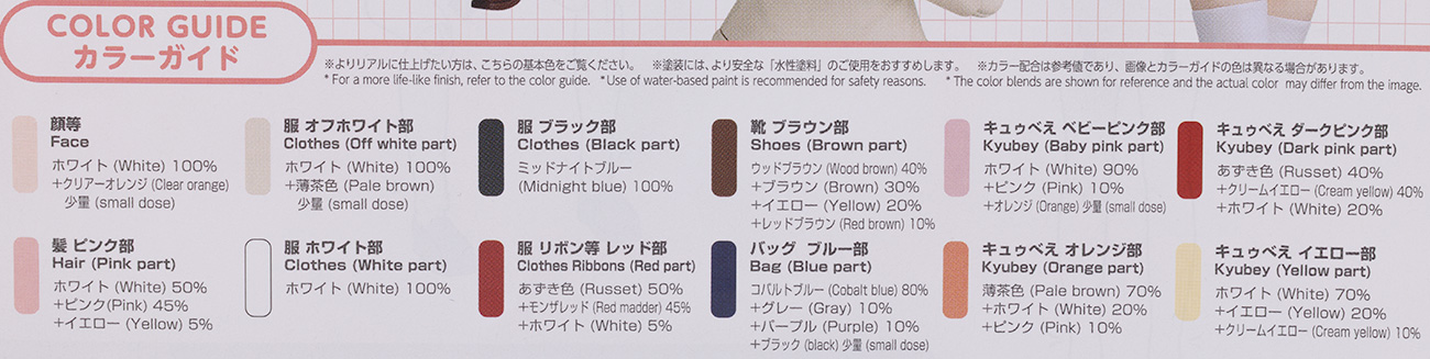 シール類はキュゥべえの色分けを補うマーキングシールとフェイスパーツ用水転写デカールが付属。