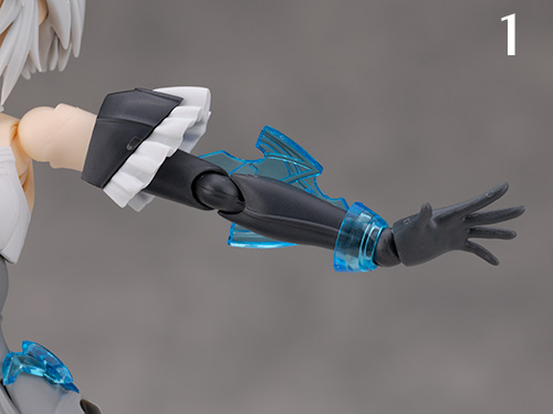 クリアパーツの使用は少なめですがモノトーンの衣装の中で目立つ良いアクセントになっているのは変わりません。