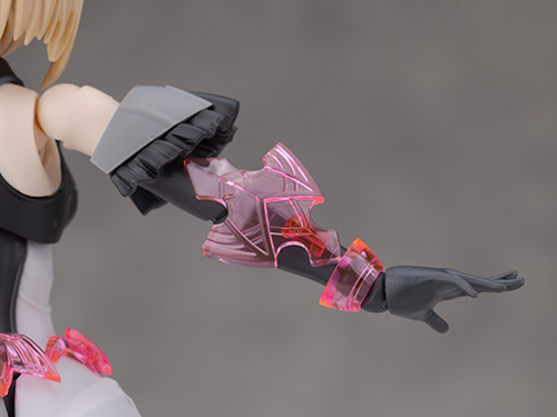 右手は逆にクリアパーツなどが取り付けられ前腕も縫い目のようなディテールがあるものに。