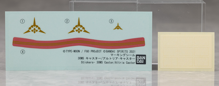 シール類ですがマントや帽子のエンブレムと帽子の金ラインを再現するマーキングシールとマント接着用の両面テープが付属します。