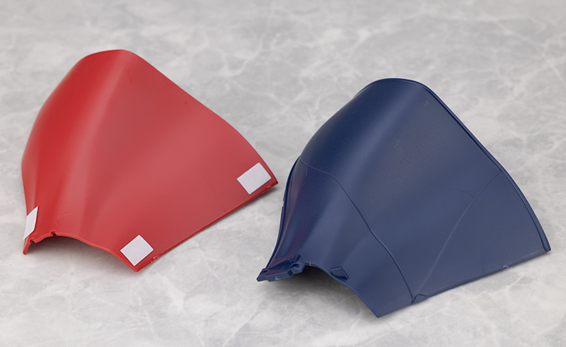 マントパーツですが薄さを保ちつつダボ穴を無くしたいためか両面テープによる接着式となっていました。