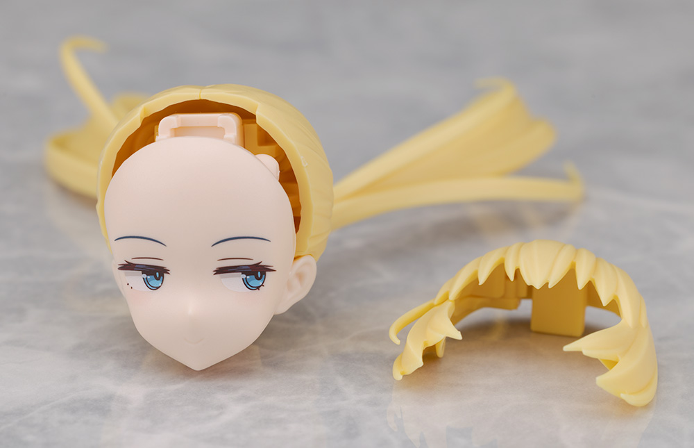 そのためこちらの髪型に従来のフェイスパーツをはめ込もうとすると干渉し無加工では取り付けできません。