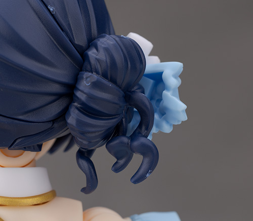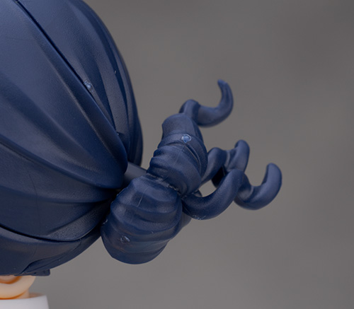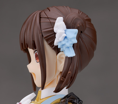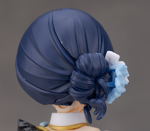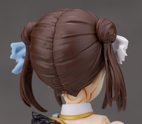 後ろ側にまとめられた髪の毛の特徴的な形状は複数のパーツで再現されています。