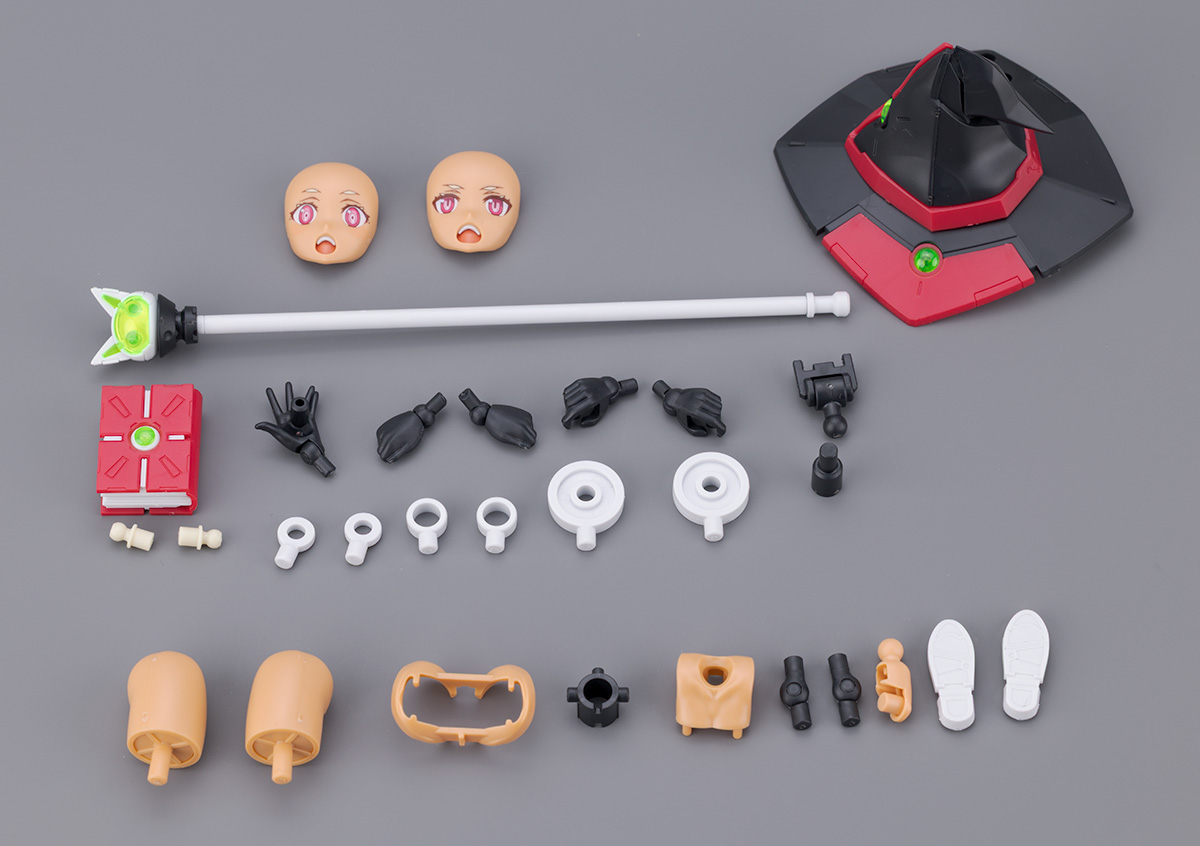 付属品は交換フェイス2種、杖、本&左本持ち手、握り手、持ち手、帽子&帽子取り付けジョイント、