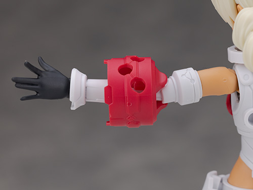 腕部も独特な構造で太い袖のような装甲が追加され袖口の部分も特徴的な形状です。