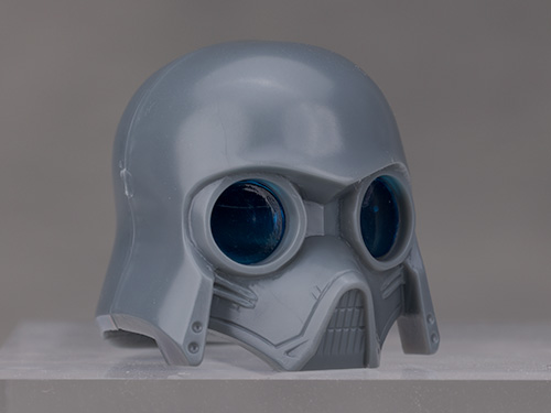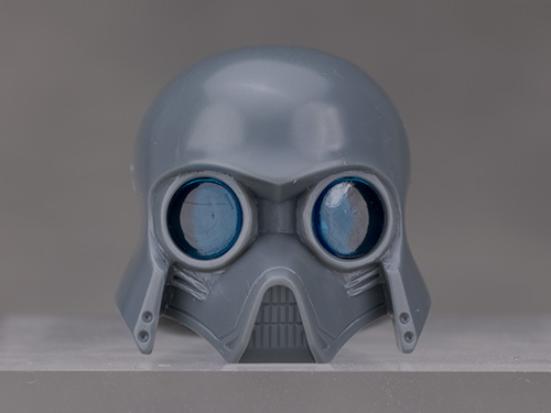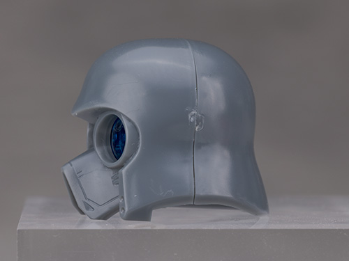 同部アップ。ヘルメットは前後分割で側面に合わせ目あり。