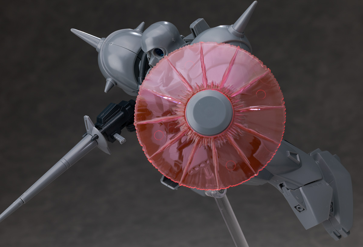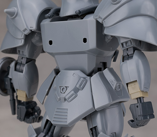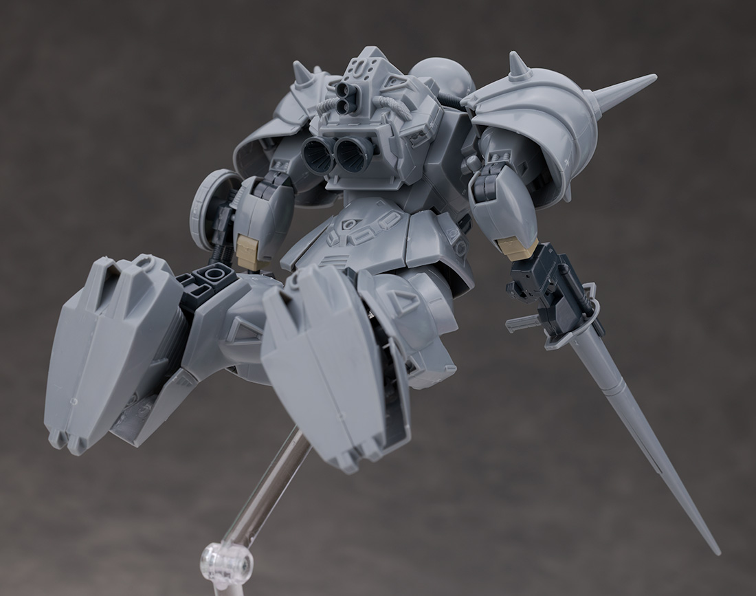 格闘戦に対応した機体という事でショットランサーが装備され、肩アーマーなども大柄でスパイクのあるデザインが特徴的。