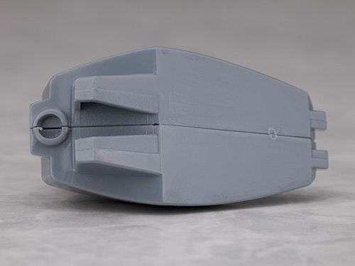 足首は左右分割で合わせ目あり。ジャバラ部分やスラスター周りも塗装が必要です。