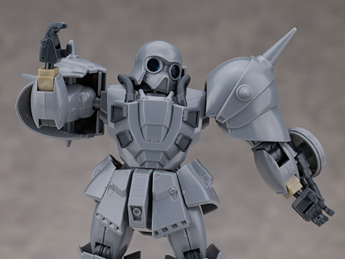 また頭部は「ハイブリットデュアルセンサー」が装備されヘルメットを被り丸いゴーグルを付けたようなデザインが目を引きます。