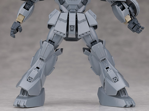 脚部アップ。脹脛横やアンクルガードのスラスターはシールがありますが他は塗装が必要です。