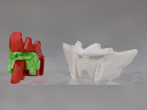背面のウイングですがパーツ分割で配色の大部分は再現されていますが、赤い羽の中央はホワイトなので塗装が必要です。