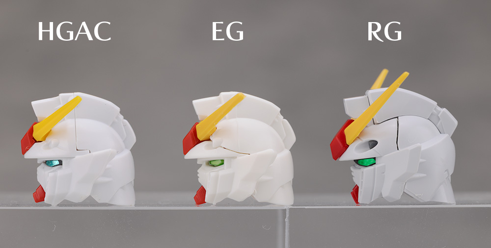 頭部アップ。頭部はHGAC版やRG版と比較しています。