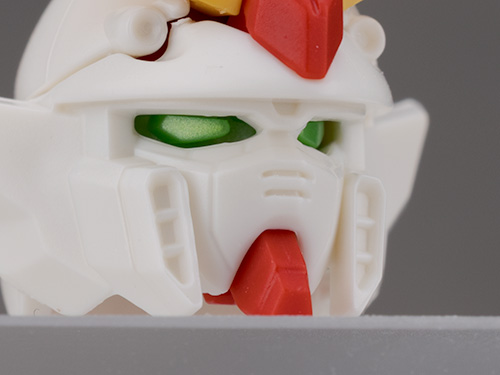 ツインアイ部分は色分けされ、周りに影を落とす事で黒いフチ部分を再現。