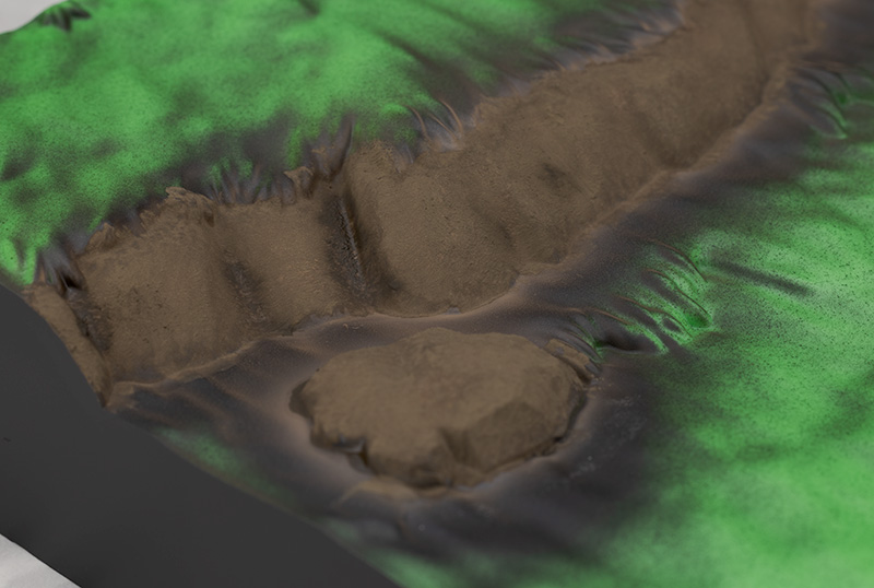 まずは岩や段差になっていて土が露出する部分に黒サフを吹き、