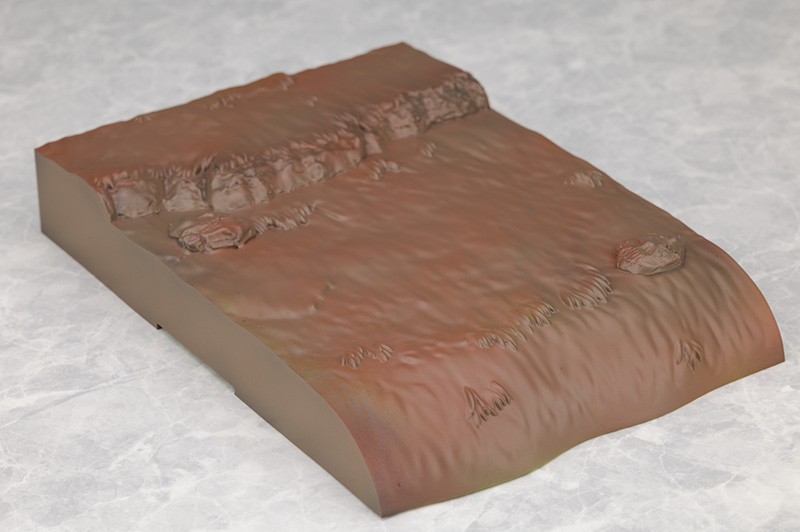 クレオスのダークアースをムラをつけながら吹付け、さらに白を混ぜた物でハイライトを吹いたのですが