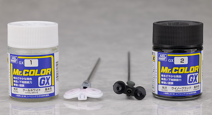 白目はクレオスのクールホワイト、黒目はクレオスのウイノーブラックにホワイトを少し混ぜた物で塗装しました。