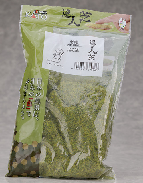 KATOの「達人芝 老緑」をベースに糊を塗って撒きました。