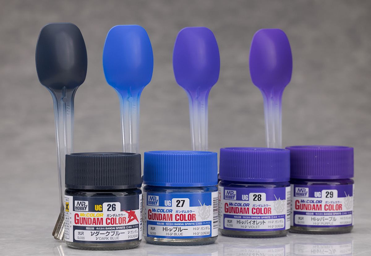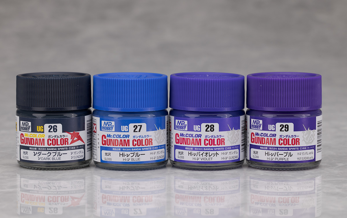 クレオスMr.カラー νダークブルー、Hi-νブルー、Hi-νバイオレット、Hi-νパープル レビュー【ガンダムカラー】