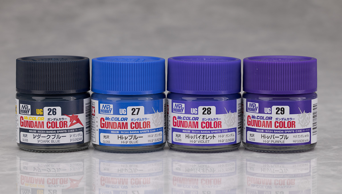 以上クレオスMr.カラー ガンダムカラー νダークブルー、Hi-νブルー、Hi-νバイオレット、Hi-νパープル レビューでした。