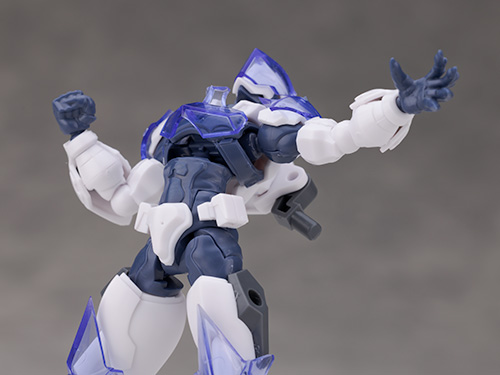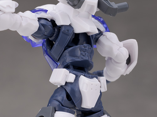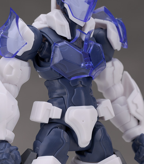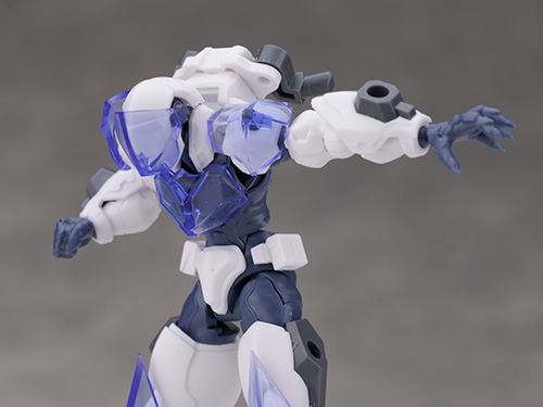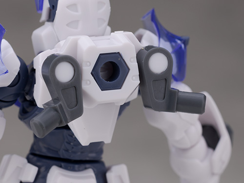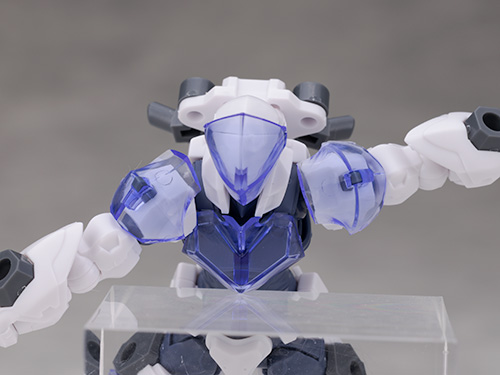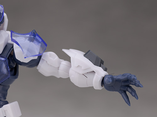 腕部アップ。肩アーマーの一部はクリアパーツ製。