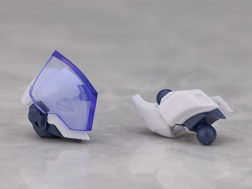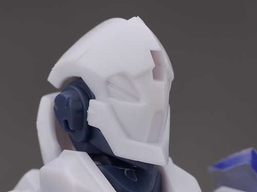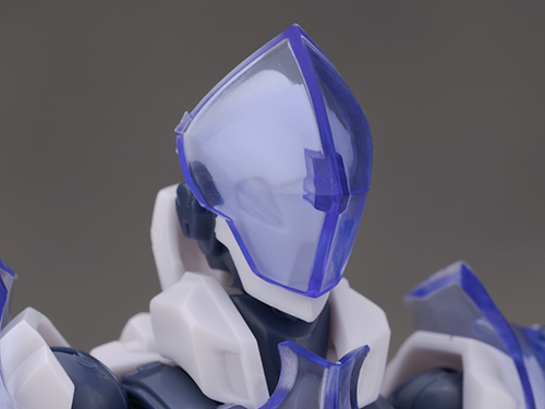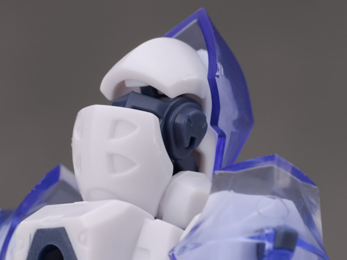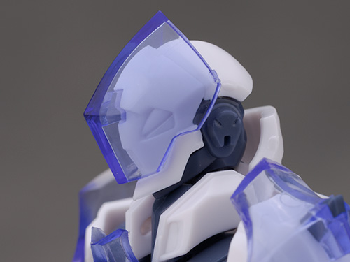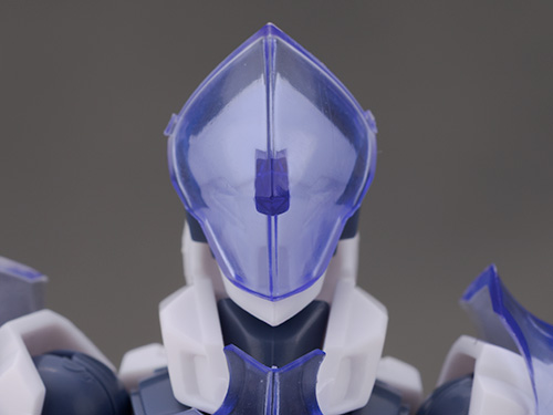 頭部アップ。頭部の前面はクリアパーツの大きなカバーで覆われています。