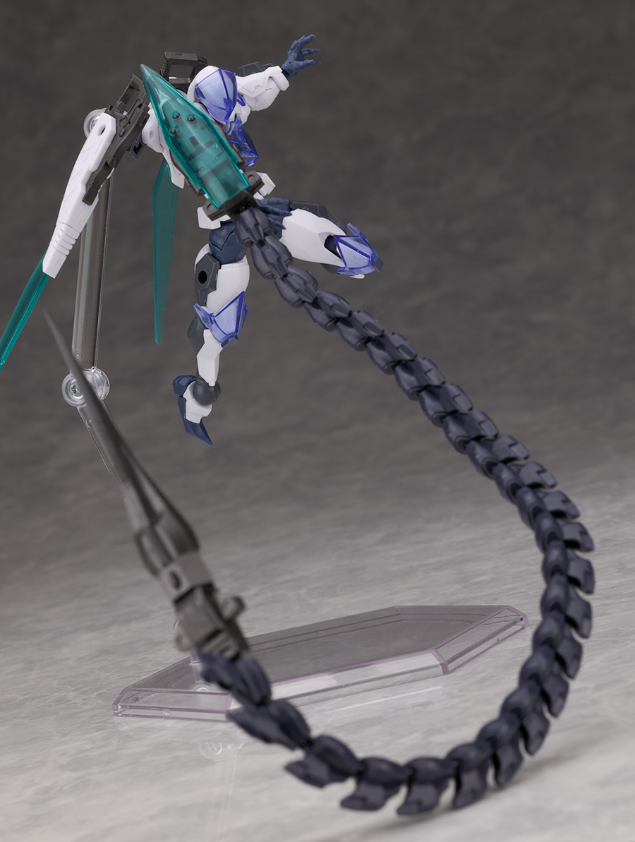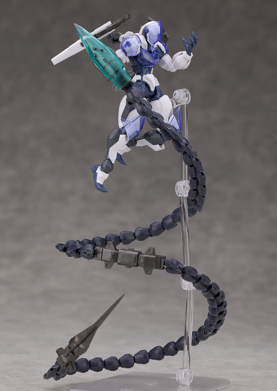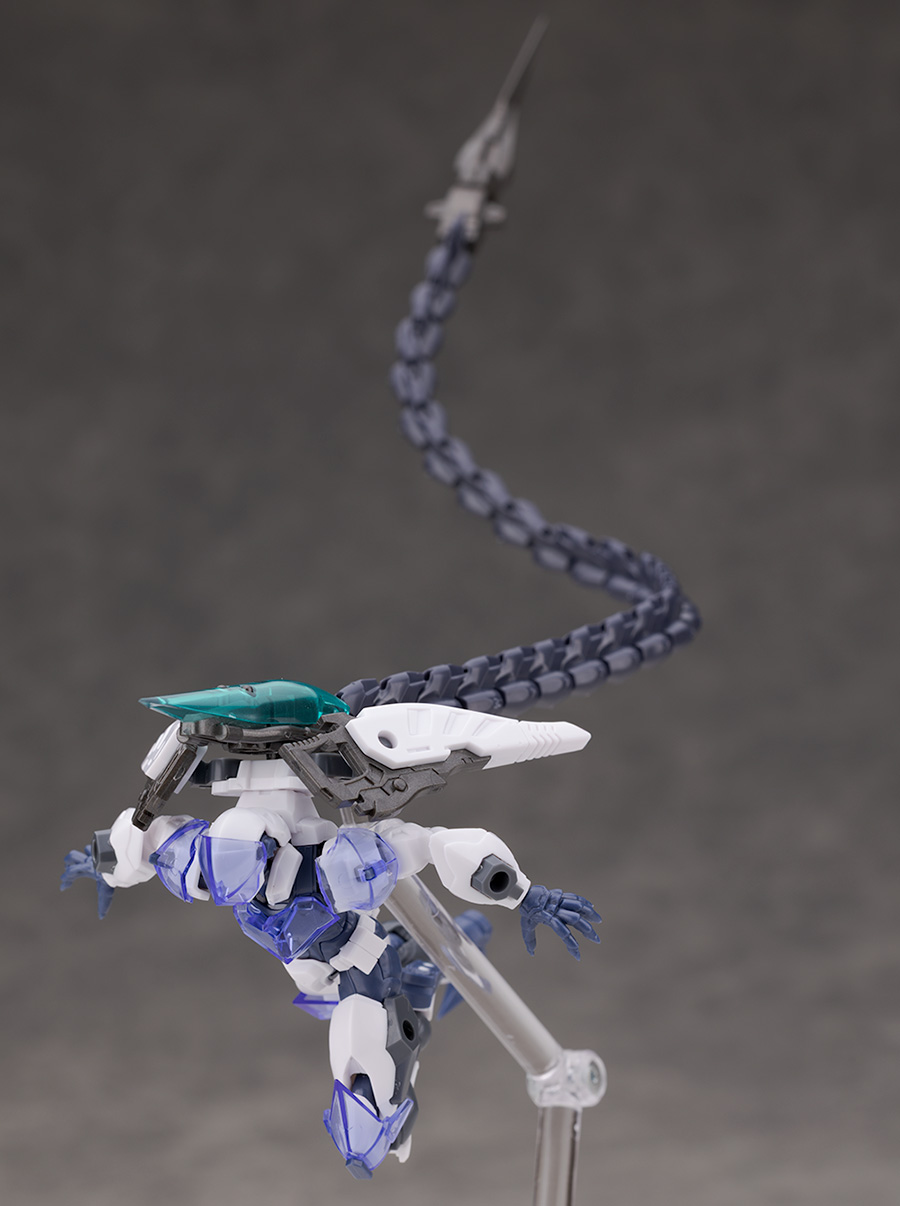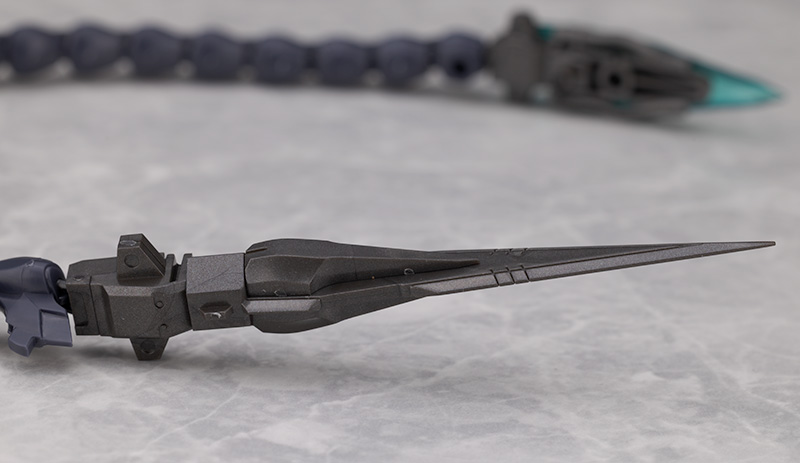 武器を装備させて。本体もある程度大きいのですが、今回は「チェインブレード」と呼ばれるかなり長さのある武装が付属しています。