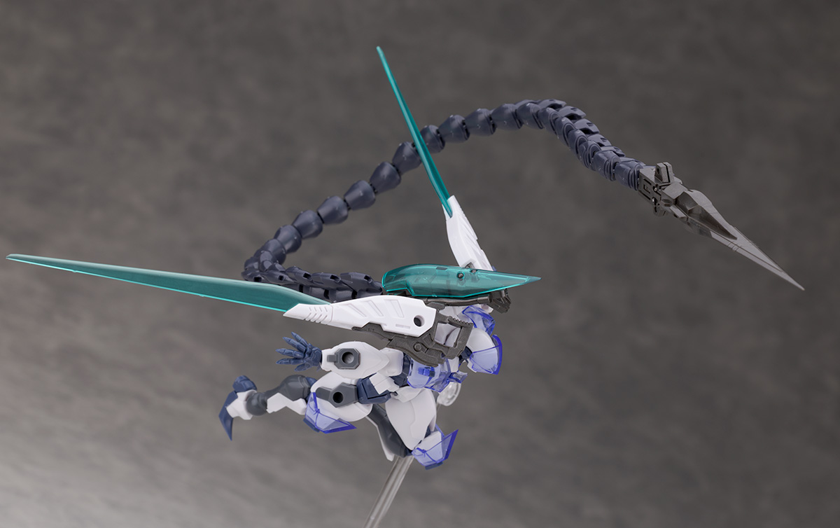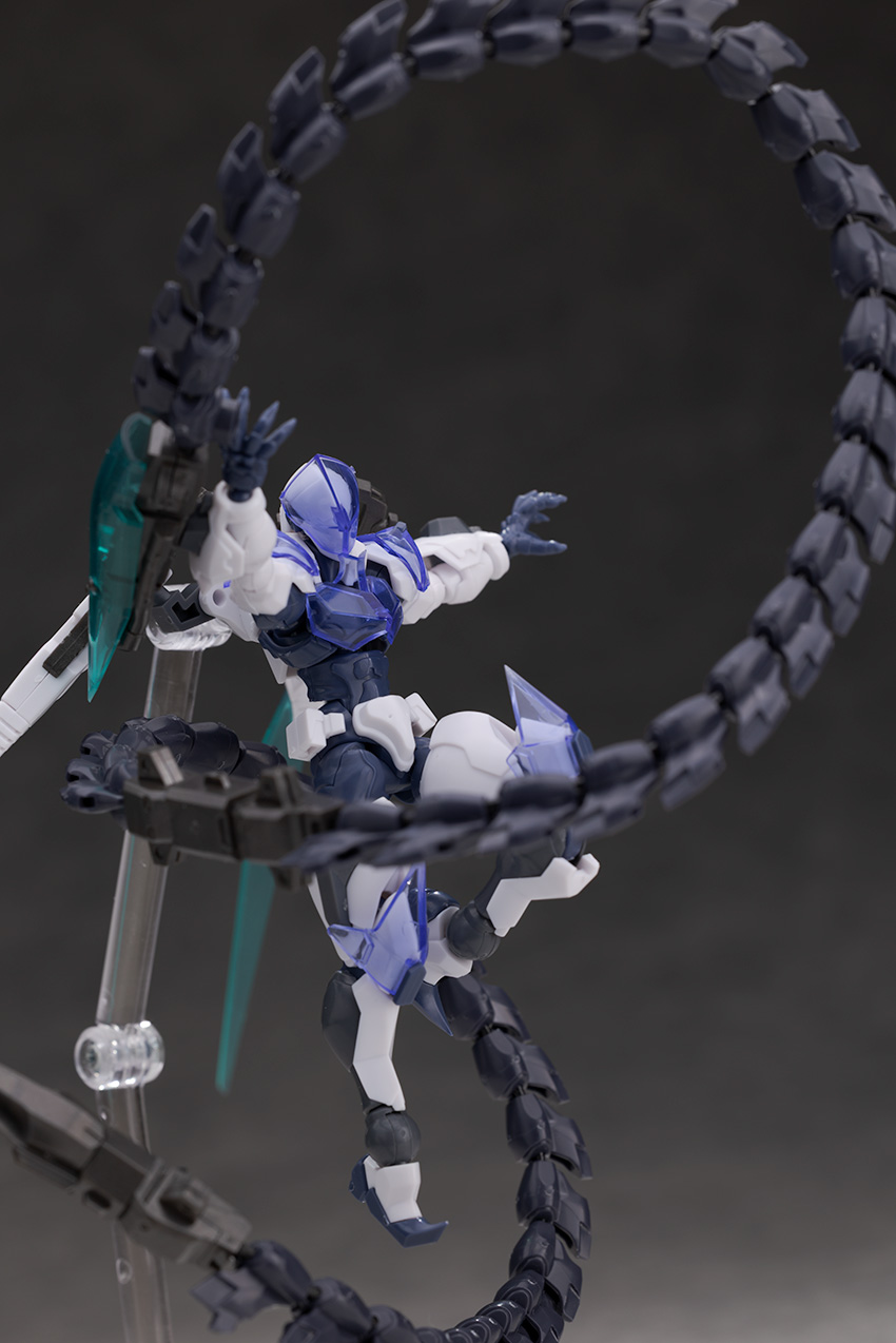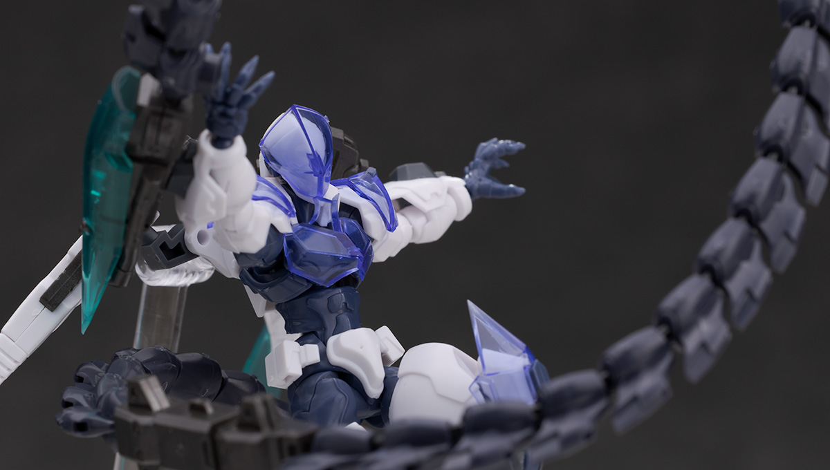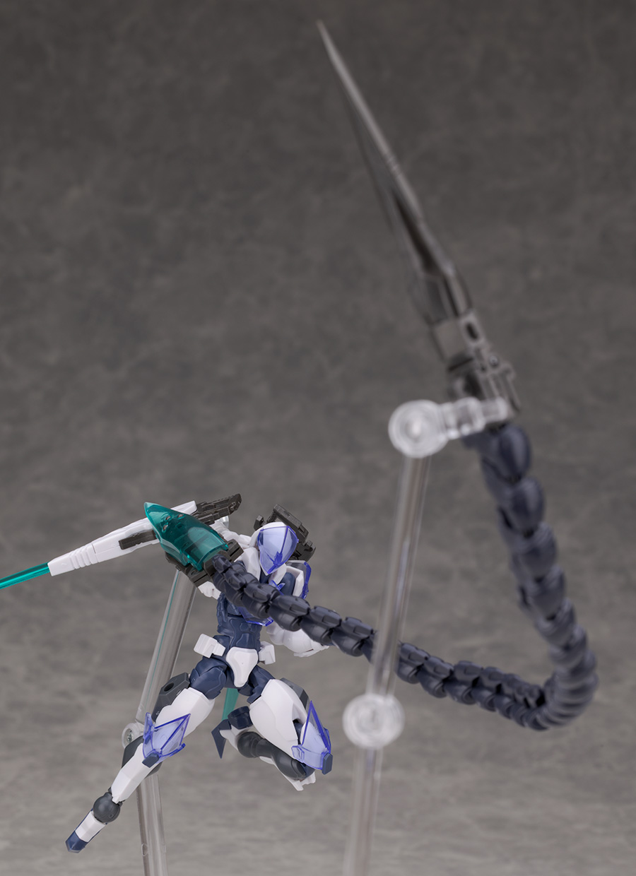 武器を装備させて。本体もある程度大きいのですが、今回は「チェインブレード」と呼ばれるかなり長さのある武装が付属しています。