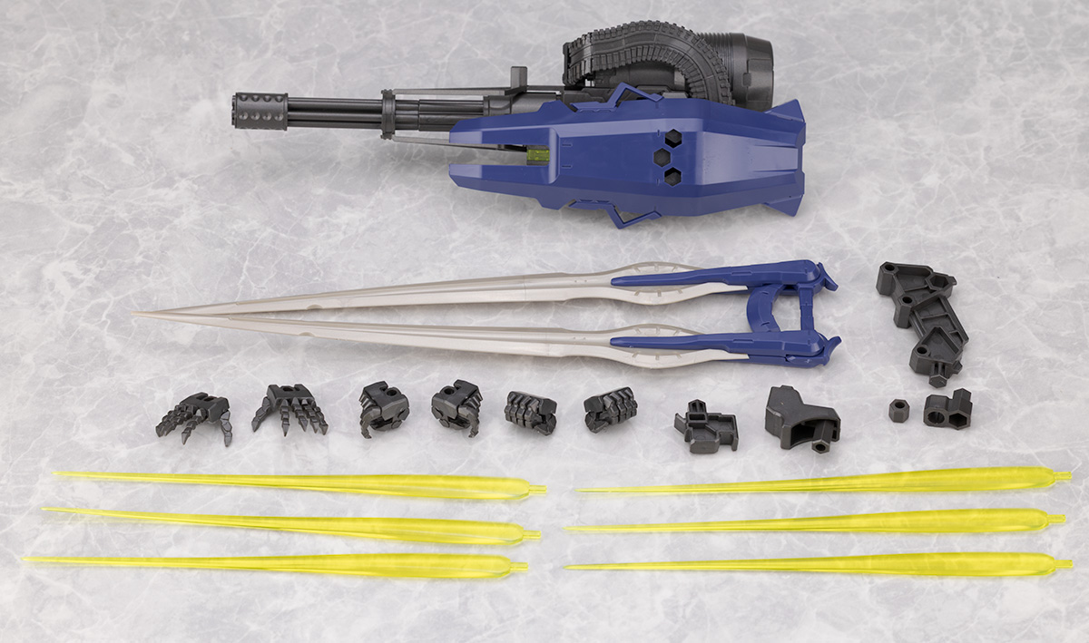 付属品は高初速多砲身機関砲、荷電式戦術双刃剣、平手、銃持ち手、持ち手、各種ジョイント、
