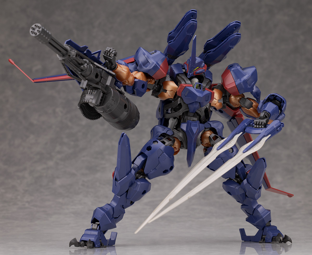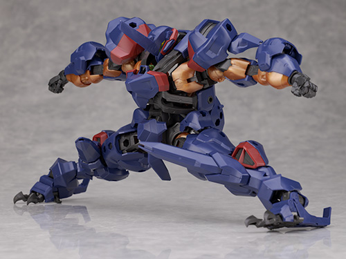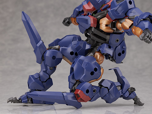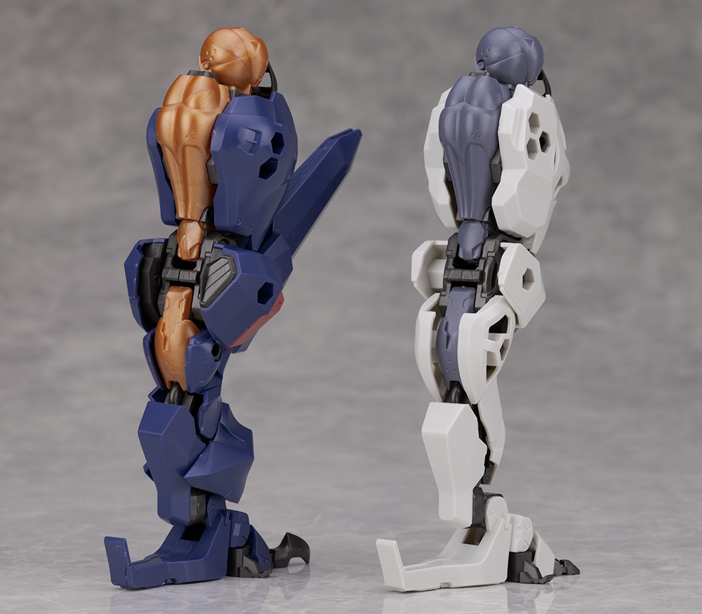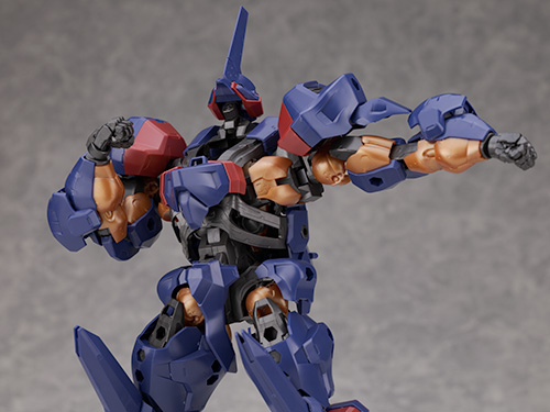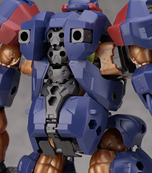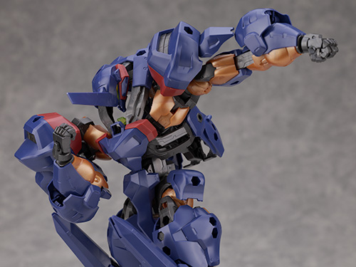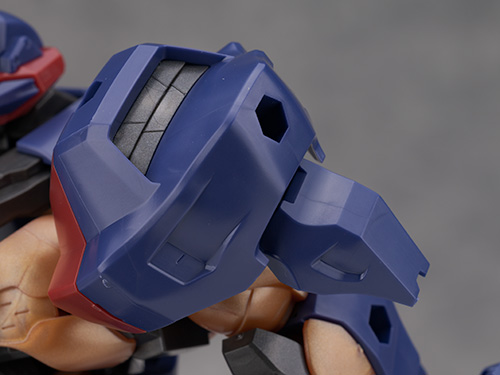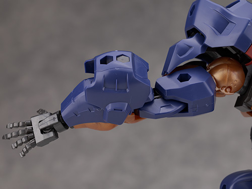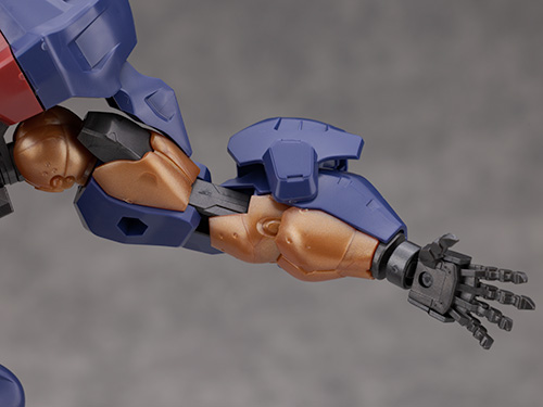 カラーリングはダークブルーベースで一部にレッドのラインがあり、人工筋肉部分はカッパー寄りのゴールドに変わっています。