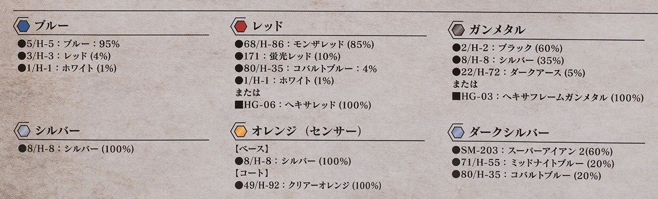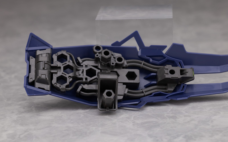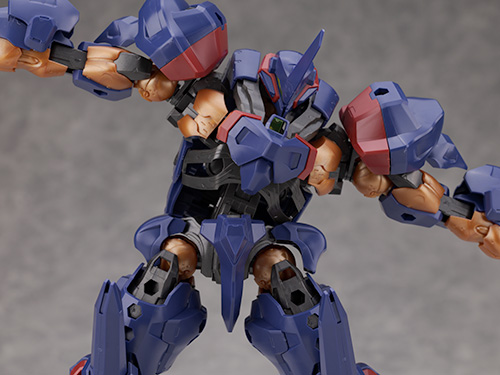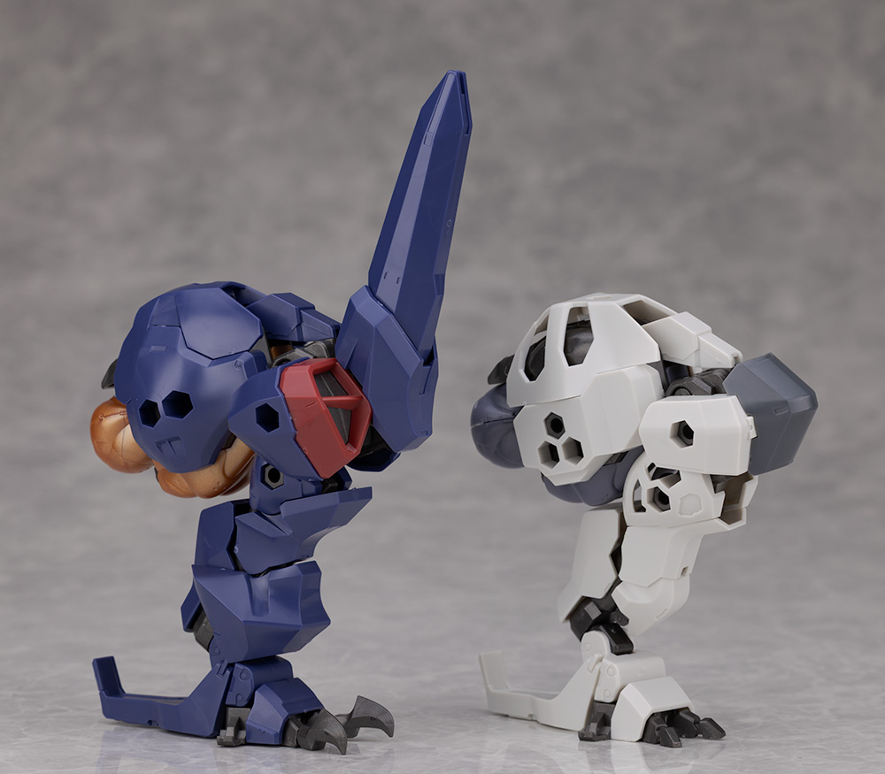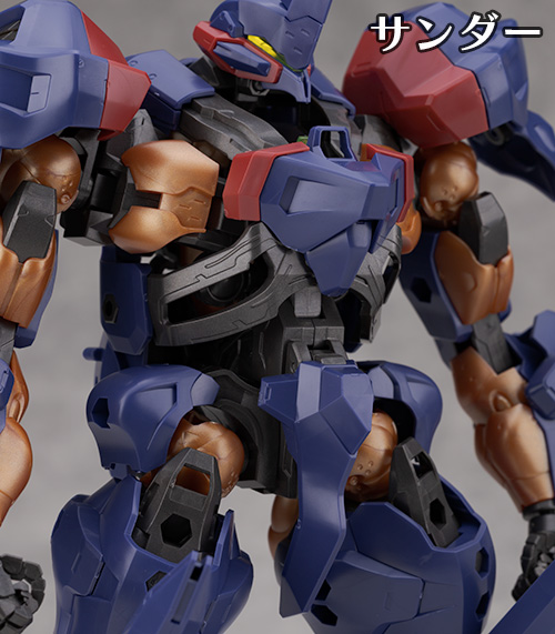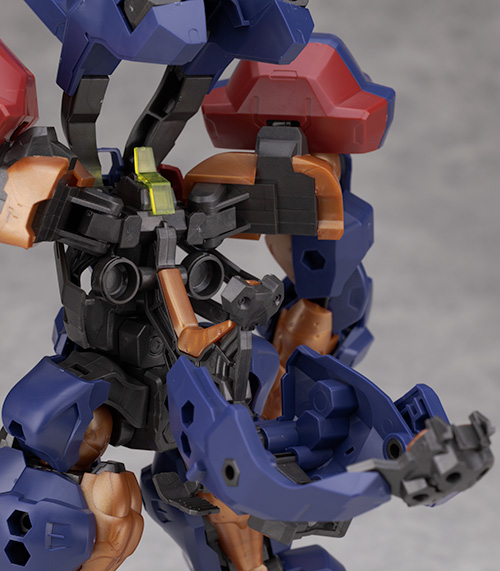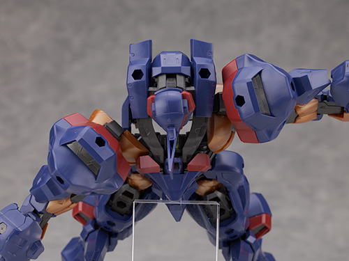 カラーリングはダークブルーベースで一部にレッドのラインがあり、人工筋肉部分はカッパー寄りのゴールドに変わっています。