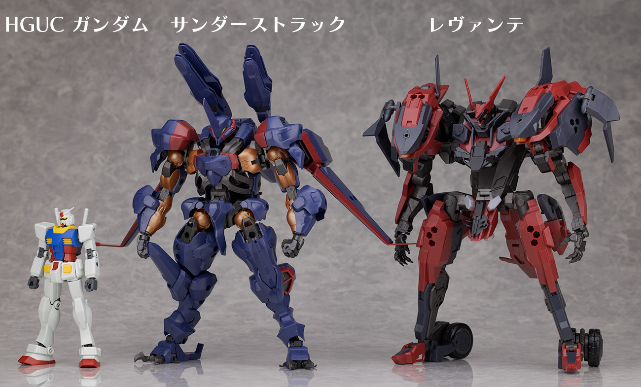 最後にHGUCガンダムや同じ大型の人型ヘキサギア、ヴェローチェ改 レヴァンテとキットサイズの比較。