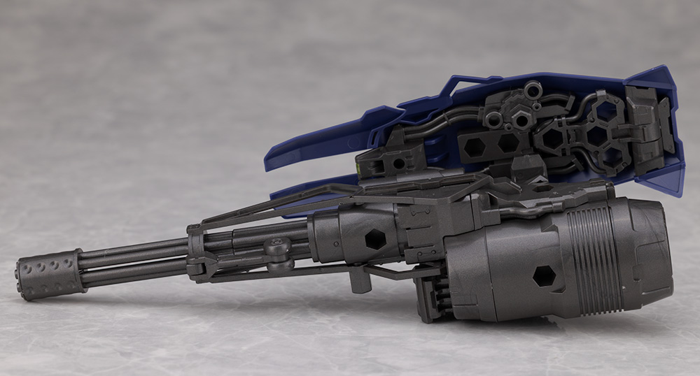 シールド部分にはクリアパーツが使われ、ガトリングの砲身も一体化されずしっかり砲身の間に隙間が作られた良い仕上がりです。