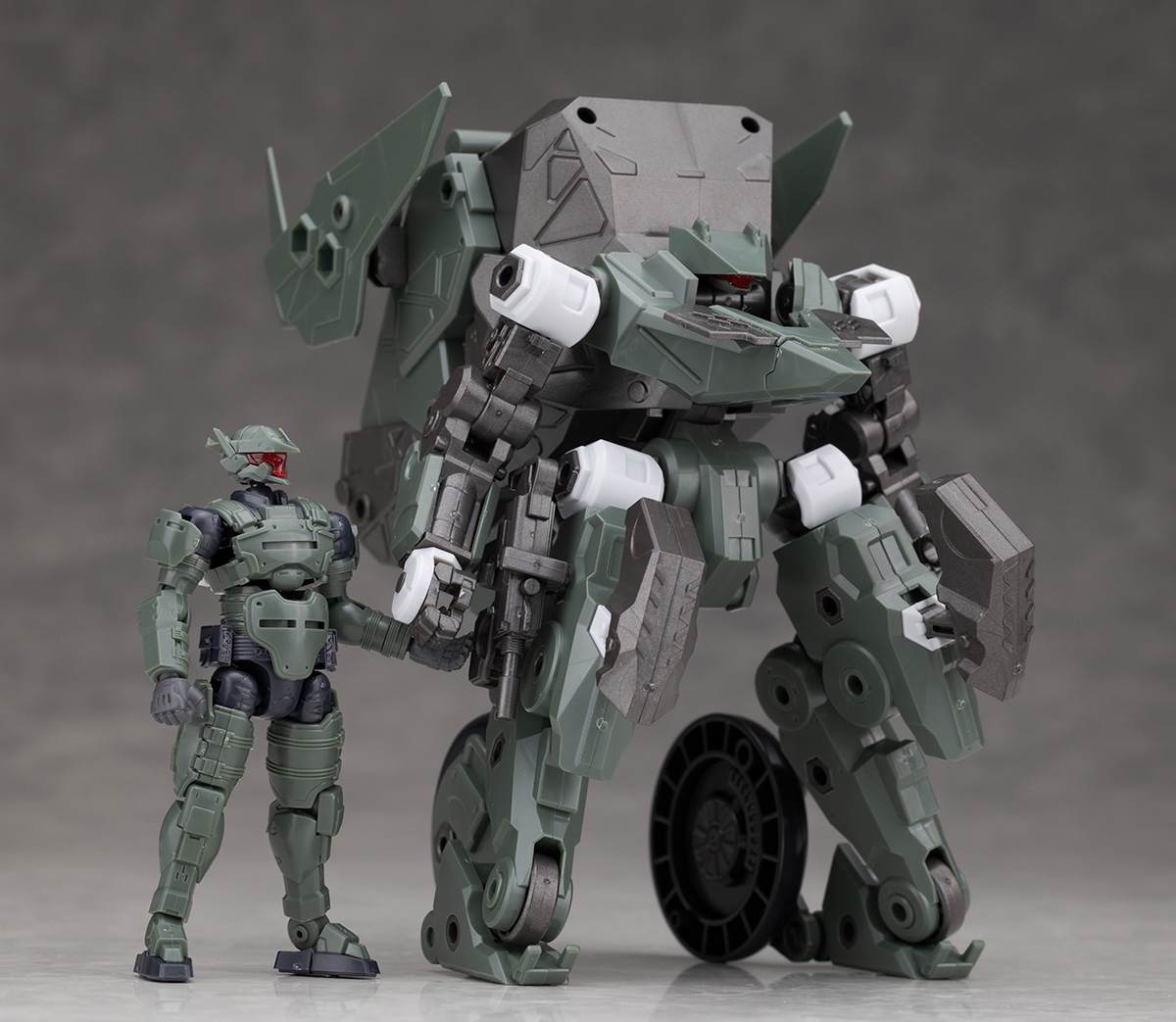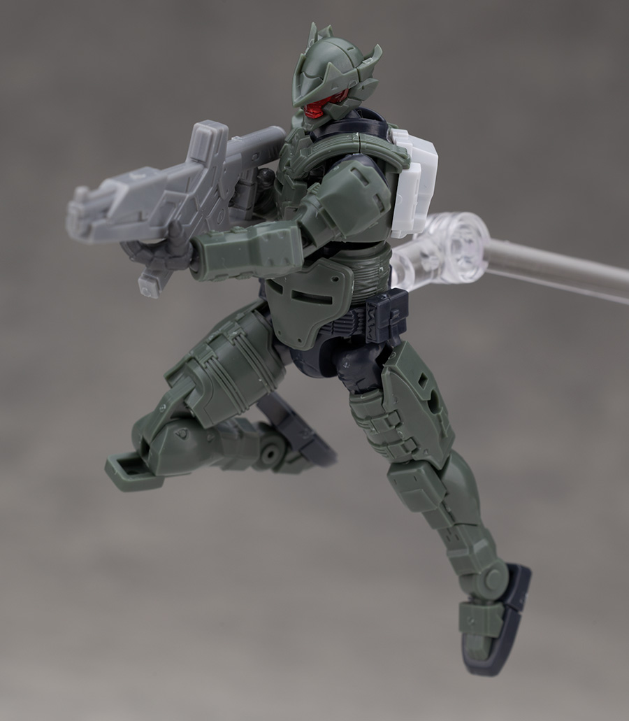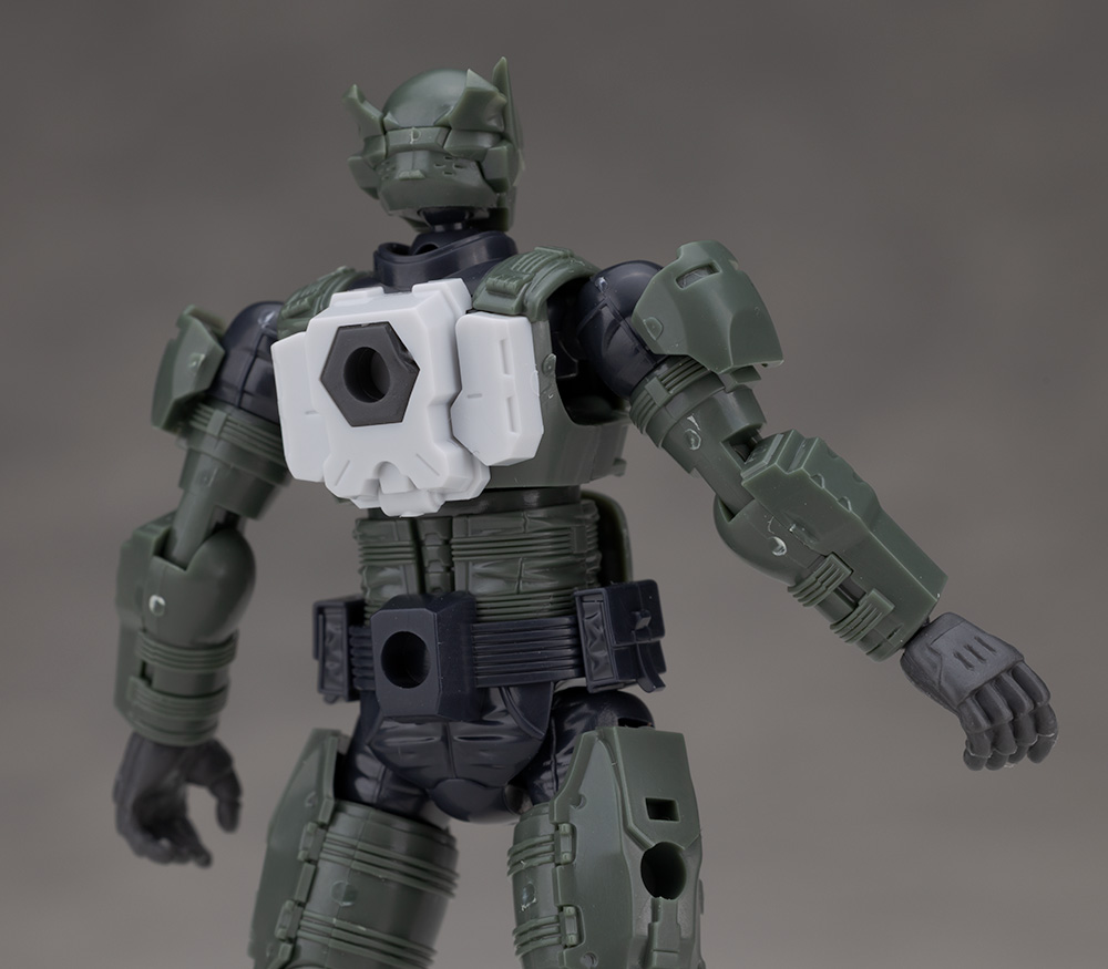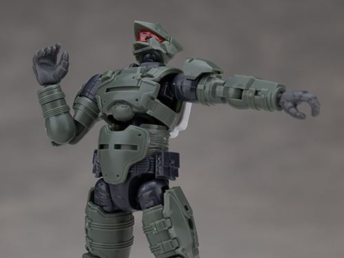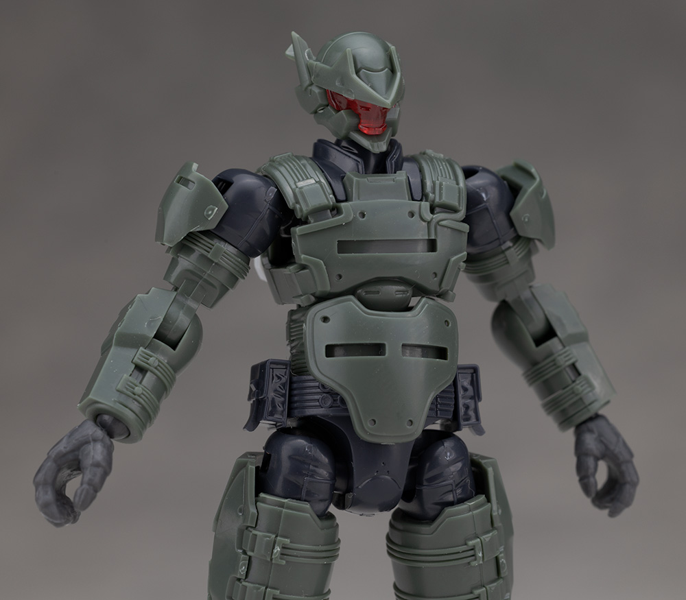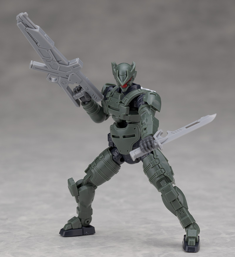 SFとミリタリー要素が融合した渋いボディデザインが特徴ですが、頭部は新規パーツに交換されています。