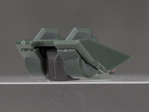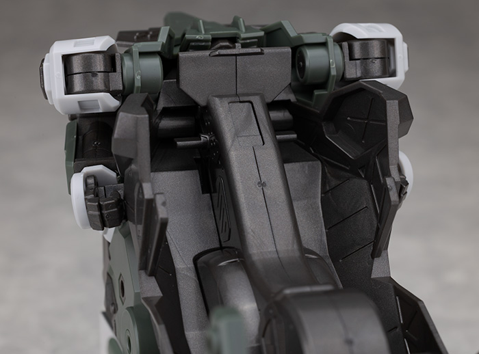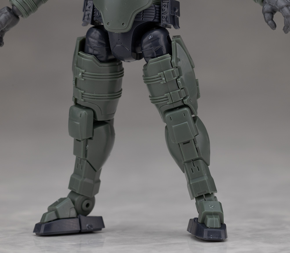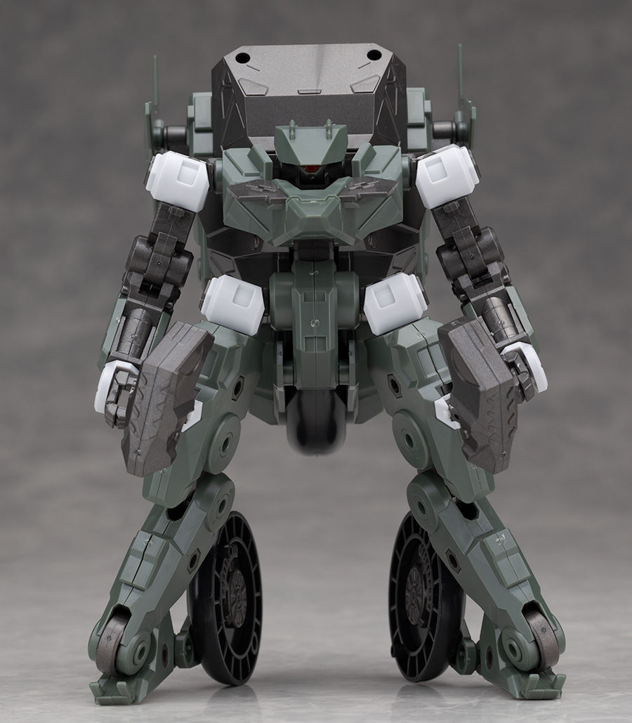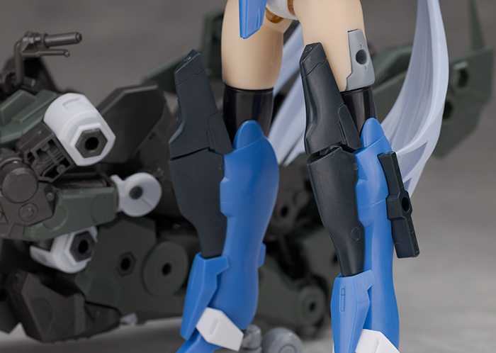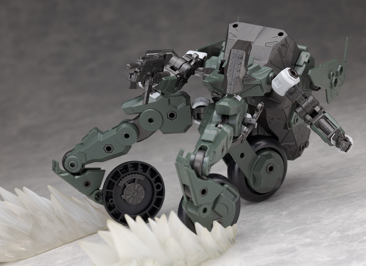脚部は独特のデザインで関節などの他、飛び出たような膝アーマーや半分になったタイヤで構成されているカカト部分が面白いです。