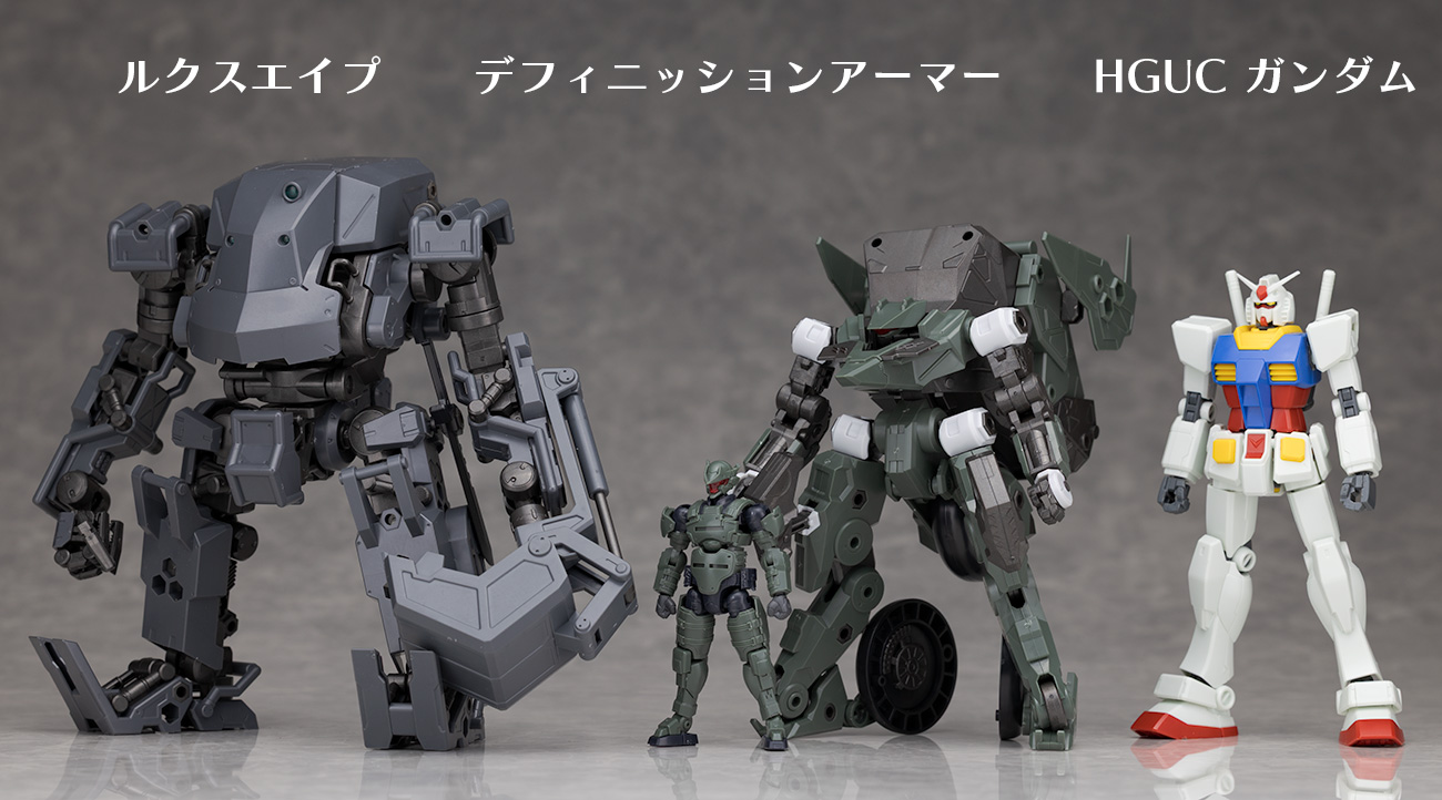 最後にバルクアーム系のルクスエイプやHGUCガンダムと並べてキットサイズの比較。